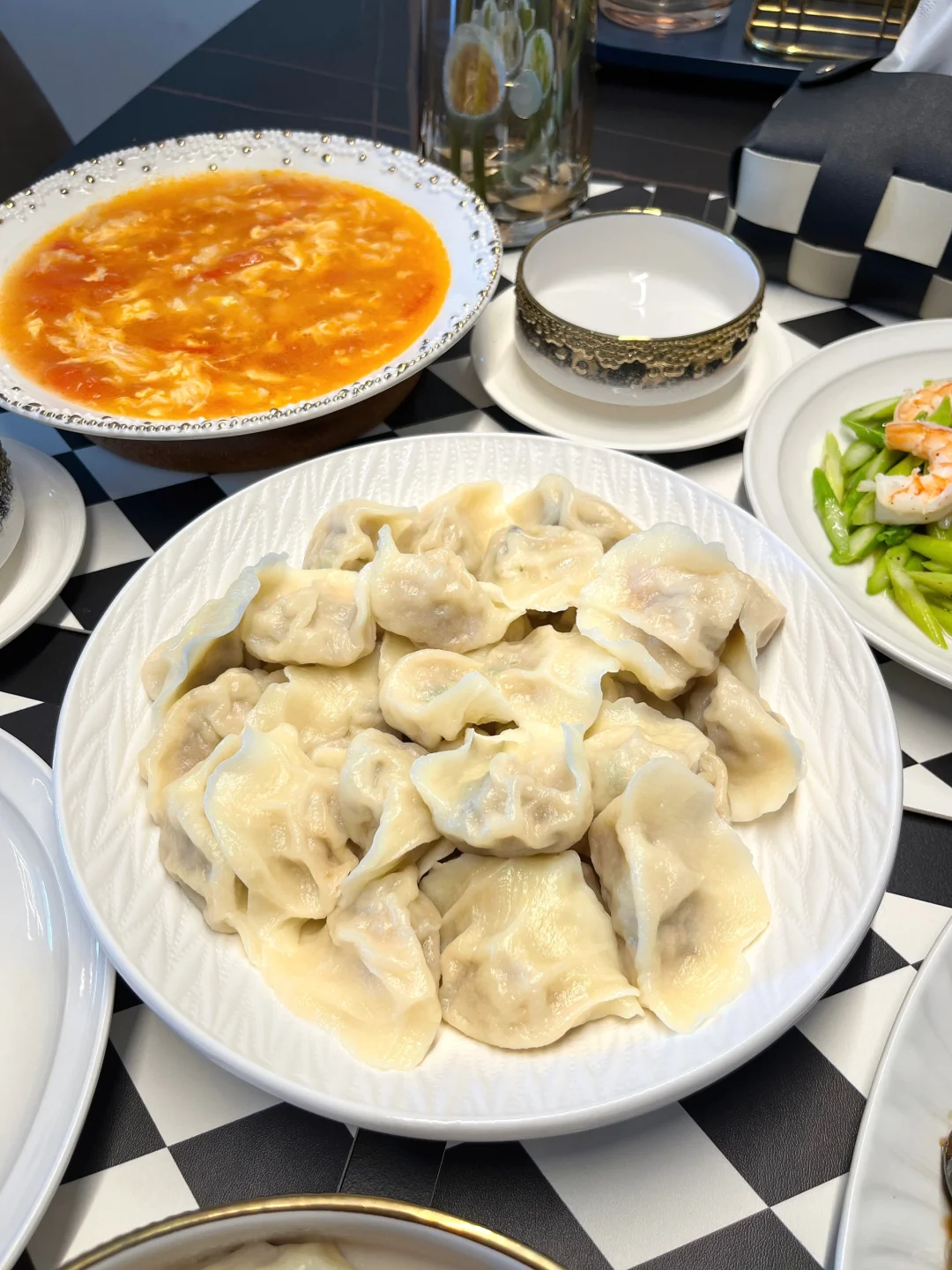 家人说想吃饺子啦,其实我更想吃哈哈哈哈~ 北方长大的孩子隔几天就想吃包子、饺子、面条类,今天包的芹菜木耳鲜肉馅,香的不得了~吃的时候就想好周末再给孩子包这个馅的包子啦~ 【今日菜单】 芹菜鲜肉饺子 白切牛肋条 凉拌皮冻鹌鹑蛋 芦笋炒虾仁 西红柿疙瘩汤