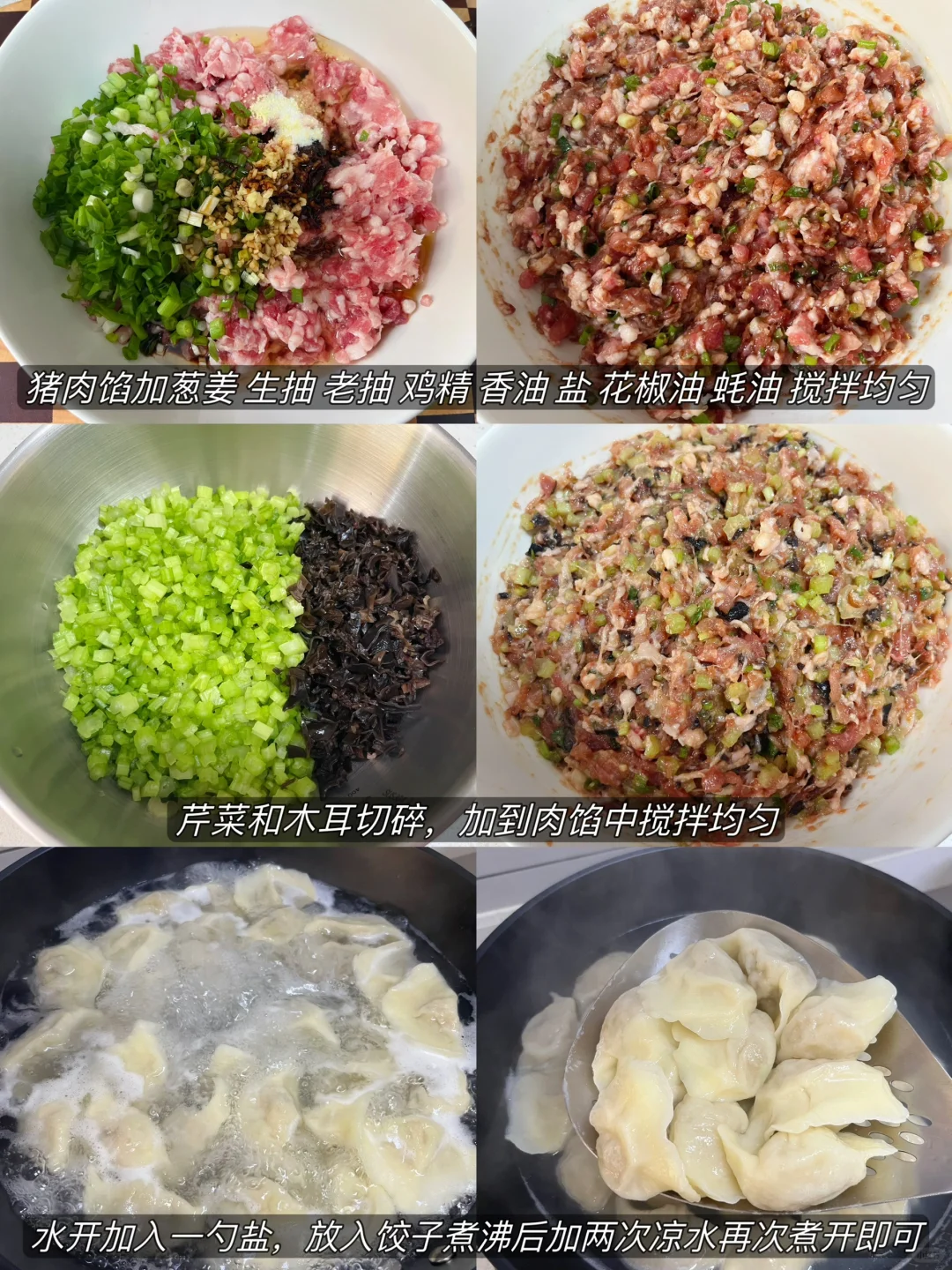 饺子馅还养生呢,芹菜木耳鲜肉,吃得跟药膳似的,哈哈,吃得健康,乐趣减半