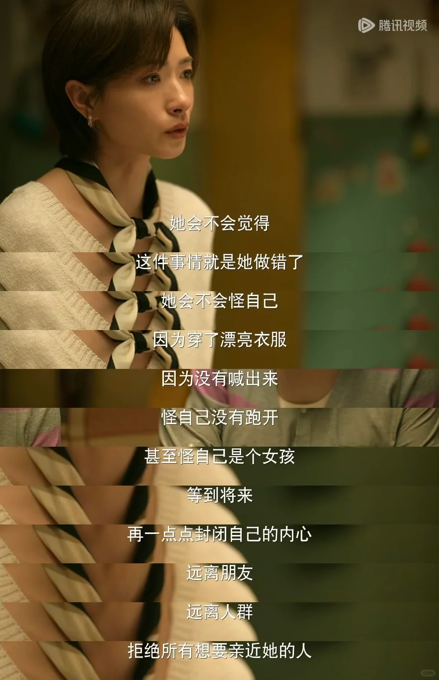 苏苏说逃避只会让孩子觉得她做错了,也许她会责怪自己穿了漂亮衣服,责怪自己没有跑开,甚至怪自己是个女孩,等到将来一点点封闭自己的内心,远离朋友,远离人群,她就再也感受不到世界的善意了。