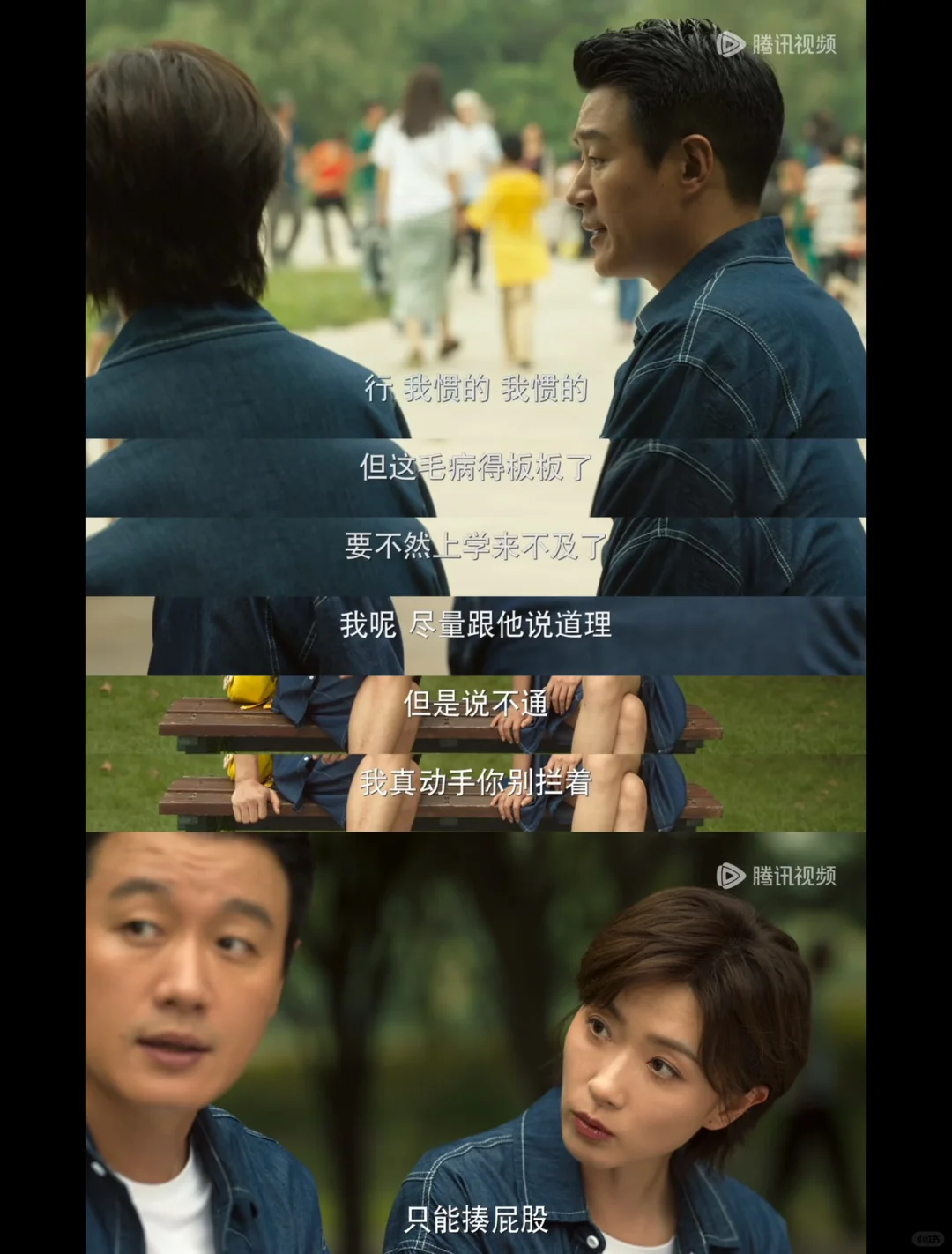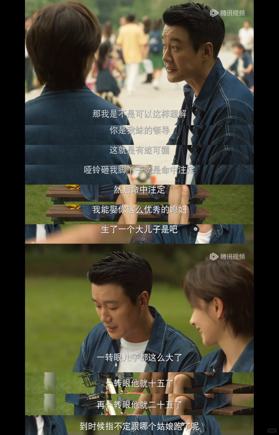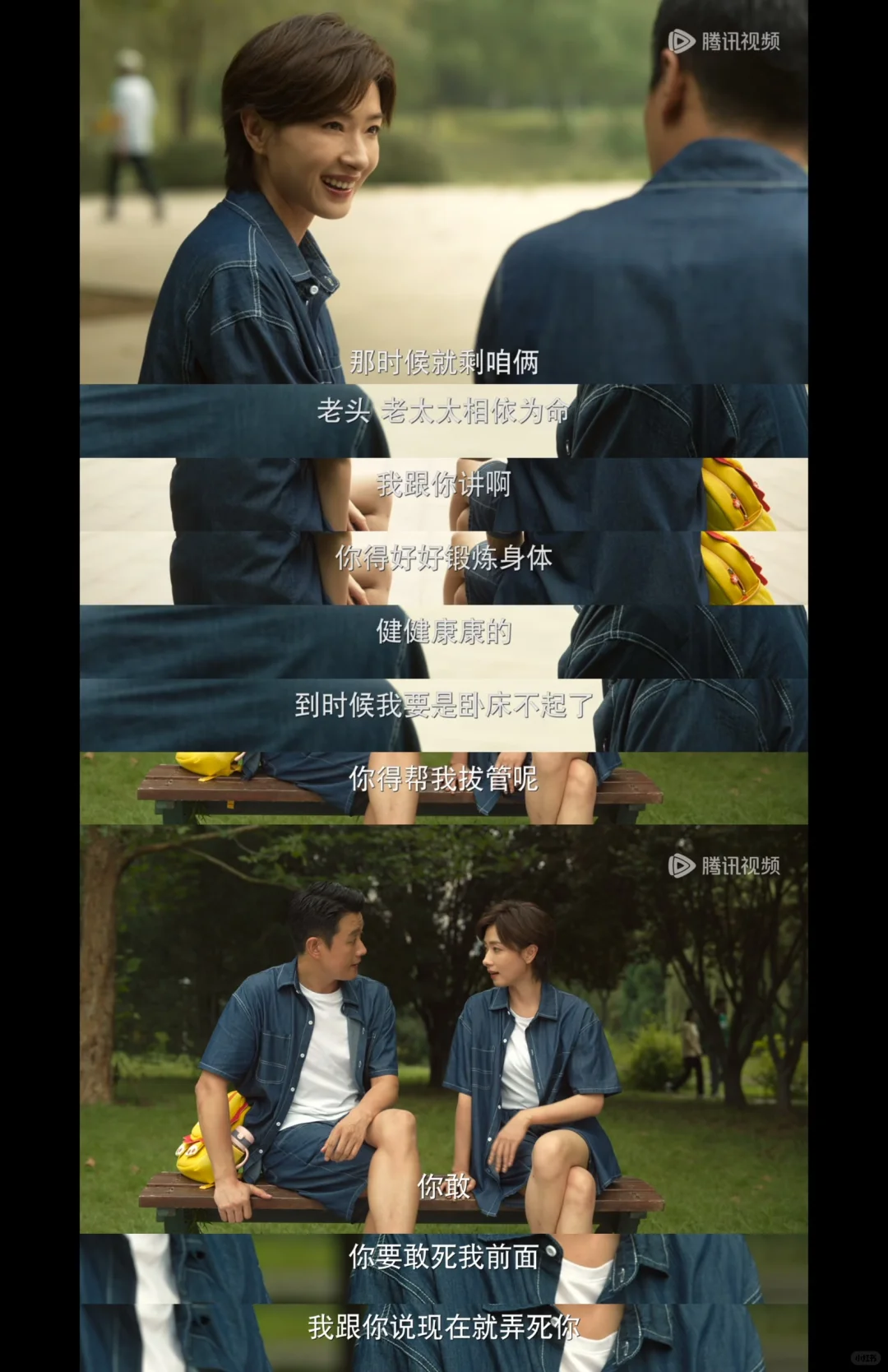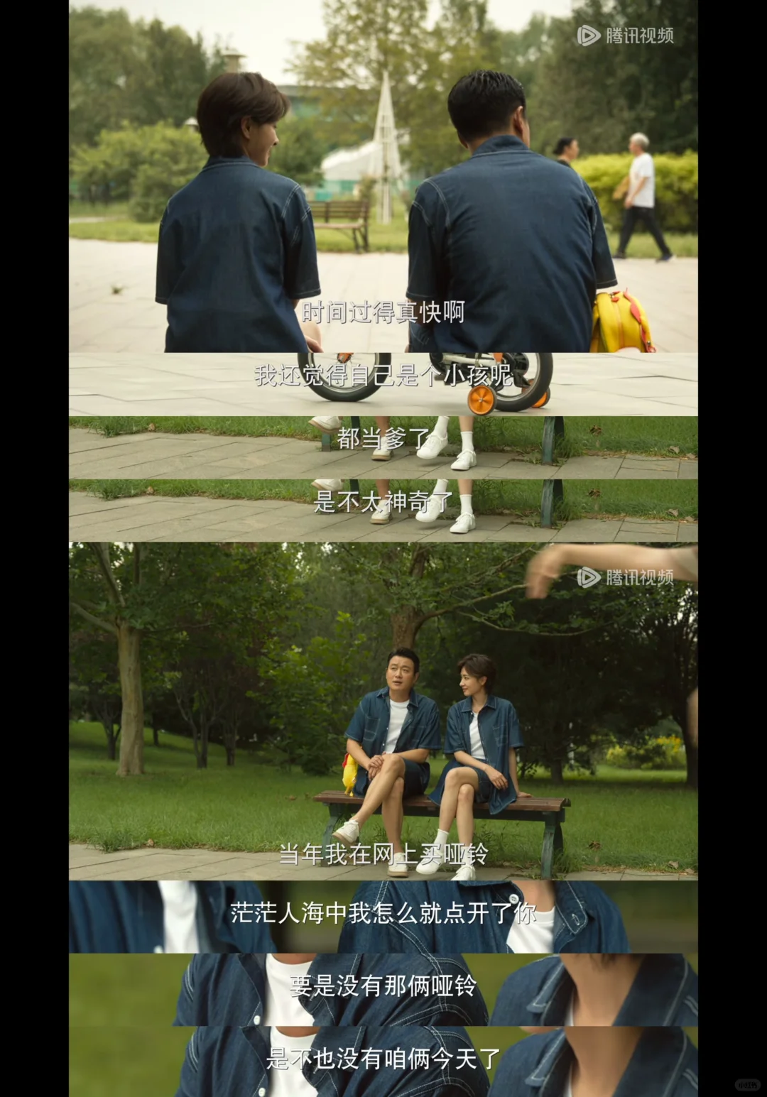 两人穿着情侣装去幼儿园接孩子,坐在公园的长椅上聊起孩子的教育,聊起当年的缘分,聊起日后的生活。