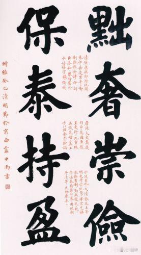 当今能把榜书写到如此功力的,恐怕超过卢中南的很少吧! 小编曾看过他写榜书大字的视频,几个界格木条一框,写出来的字浑厚大气,线条精致,结体劲健,章法清朗,和他的小楷一样完美,丝毫没有堆墨成“墨猪”的情况,没有深厚的楷书功力,很难达到这样的高度。 即使田英章,也只能中楷或小楷,很少见到他写大字榜书的,这真的很考验一个人的书法功力、笔力、笔法、结体,缺一不可! #楷书##毛笔书法##书法交流圈#