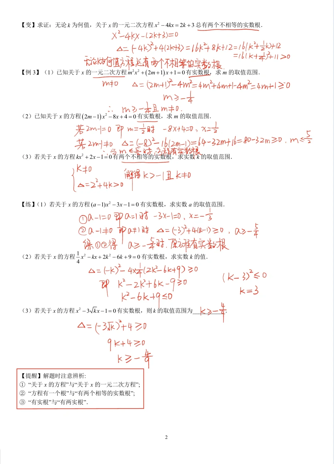 数学 初中数学 数学思维 九年级数学 人教版九年级数学上册 九上数学 初三数学 初三上册数学 根的判别式