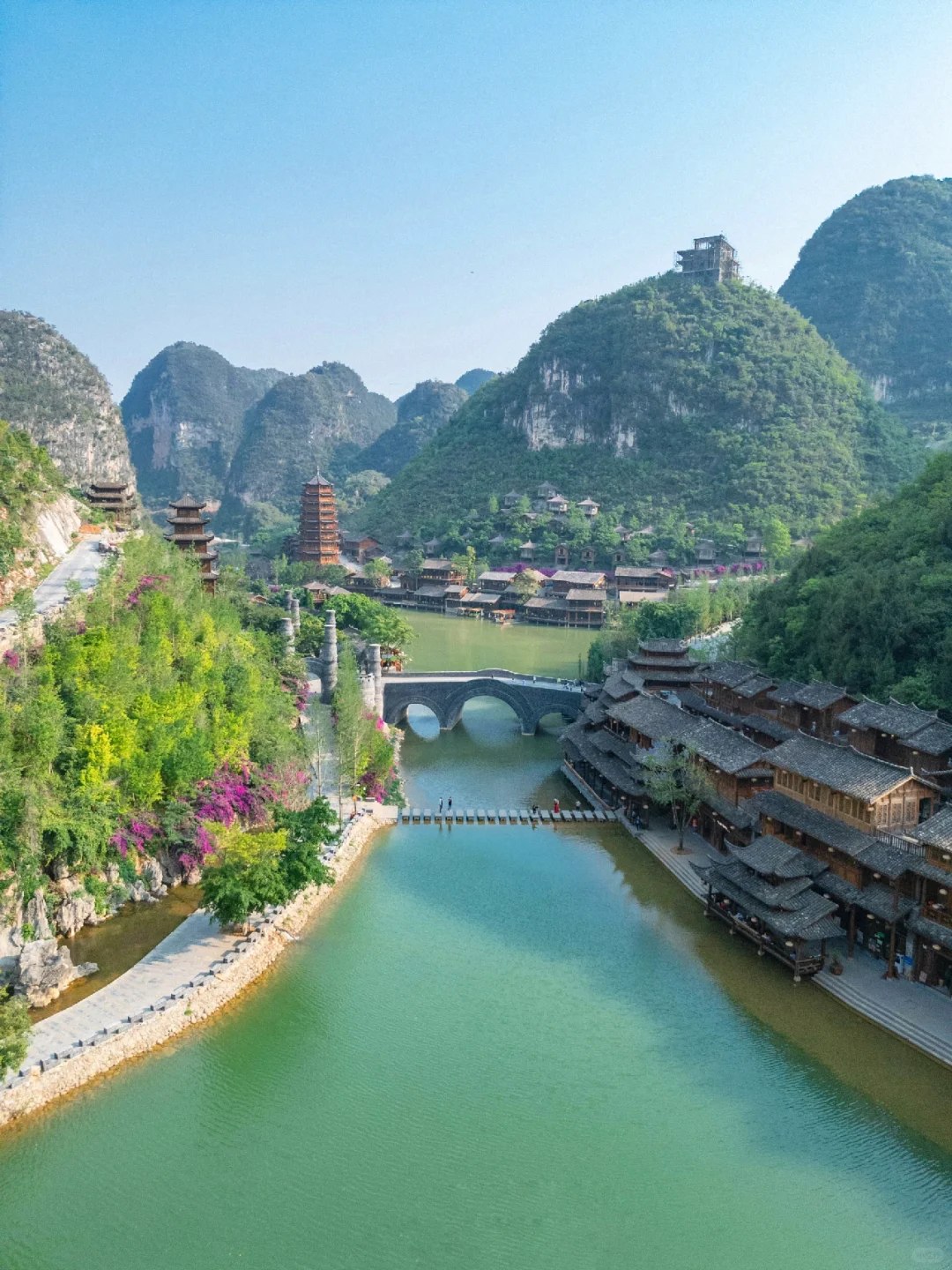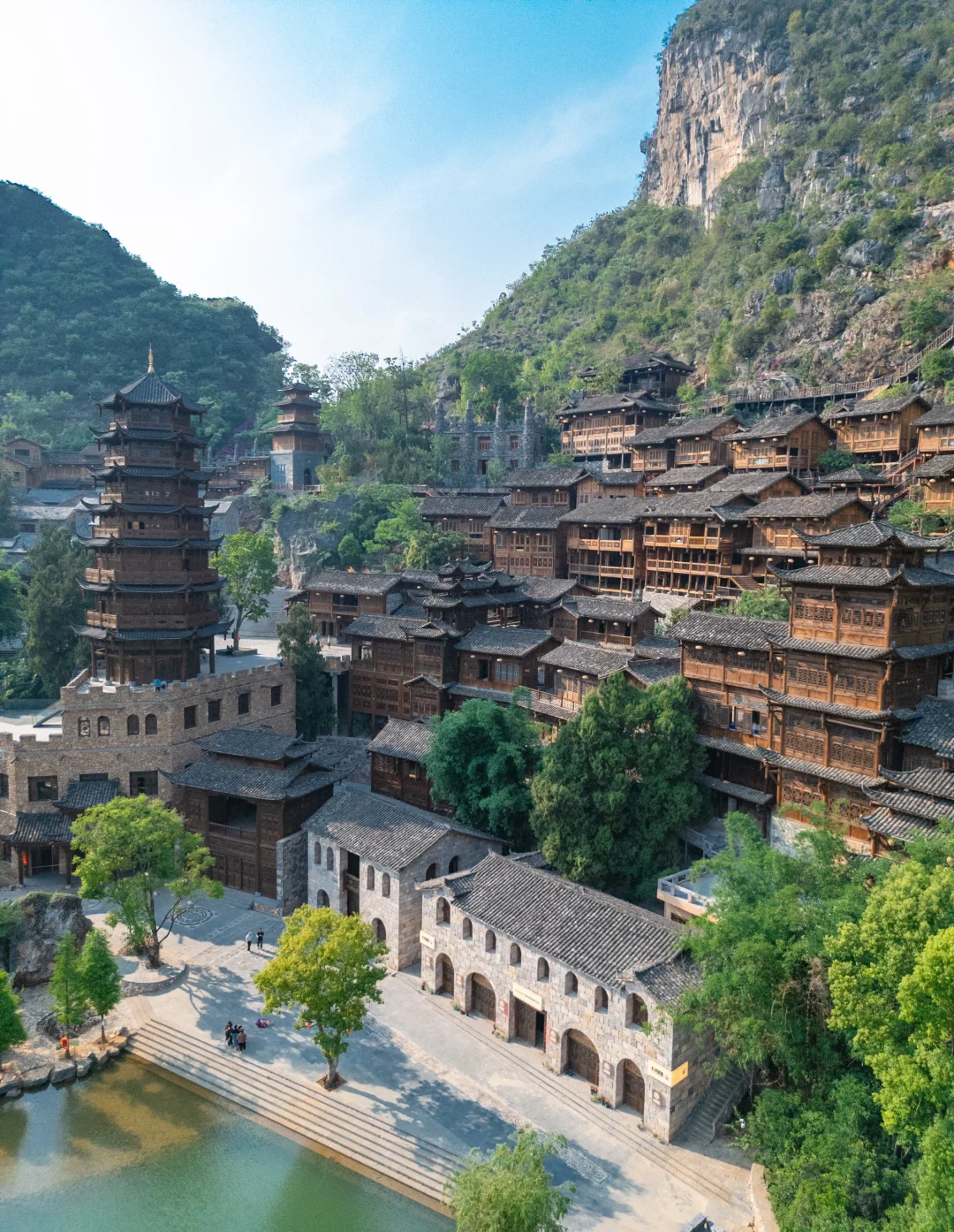峰林布依,坐落在黔西南州兴义市,是一个如诗如画的秘境,是世界典型锥状喀斯特峰林的核心区。这里,孤峰、石笋、石芽、漏斗、溶洞等地貌景观交相辉映,构成了一幅绝美的自然画卷。景区内以“水”为中心,依山傍水而建的600余栋布依族民居及配套建筑,形成了一个布依族民宿博览园。这里,山峦叠嶂,峰林奇秀,布依族的风情更是为这片土地增添了几分神秘与韵味。