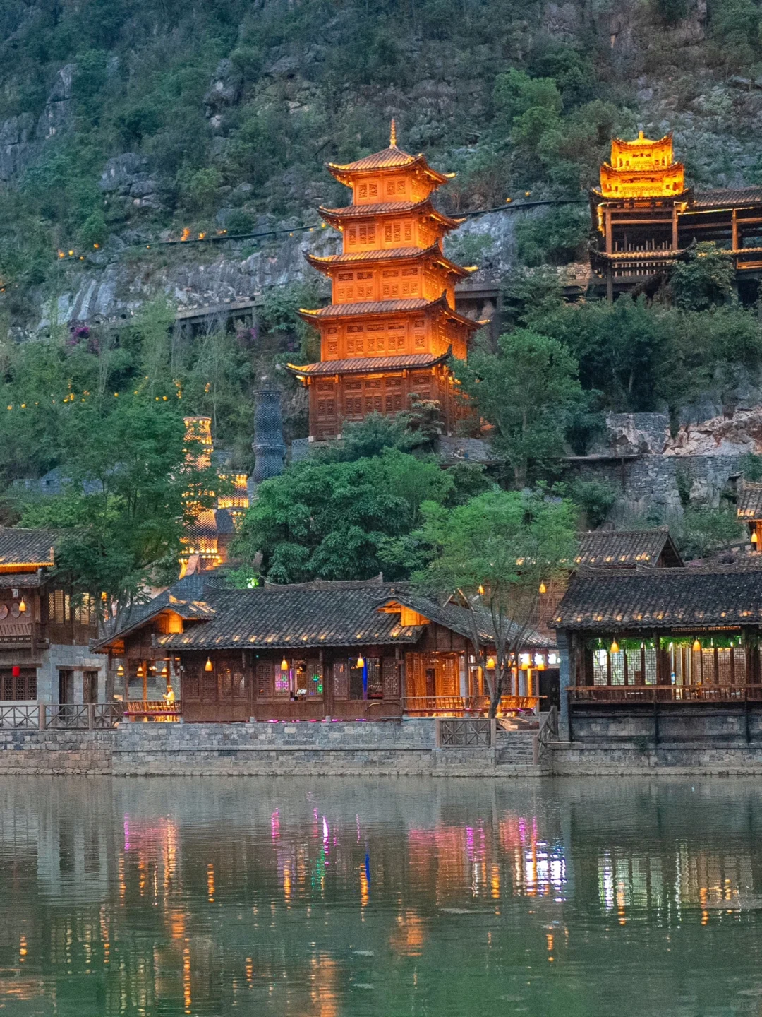 夜晚,灯光璀璨,整个景区仿佛披上了一层神秘的面纱。你可以漫步在石板路上,感受夜晚的宁静与美好。