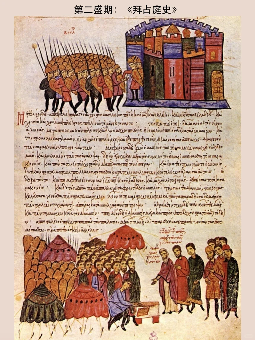 -公元8-9世纪,利奥三世利用人们对教会奢侈花费的不满,发起圣像破坏运动,以此抵抗修道院势力。教堂内壁画装饰被涂上石灰,直至马其顿和科穆宁王朝时期,才得以重见天日,拜占庭艺术进入第二盛期。