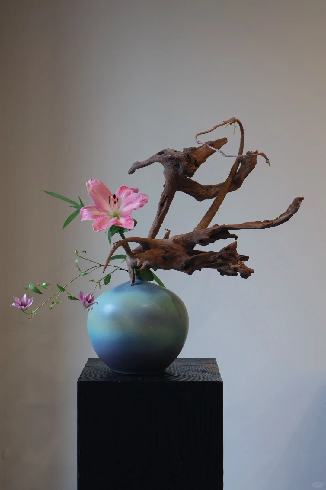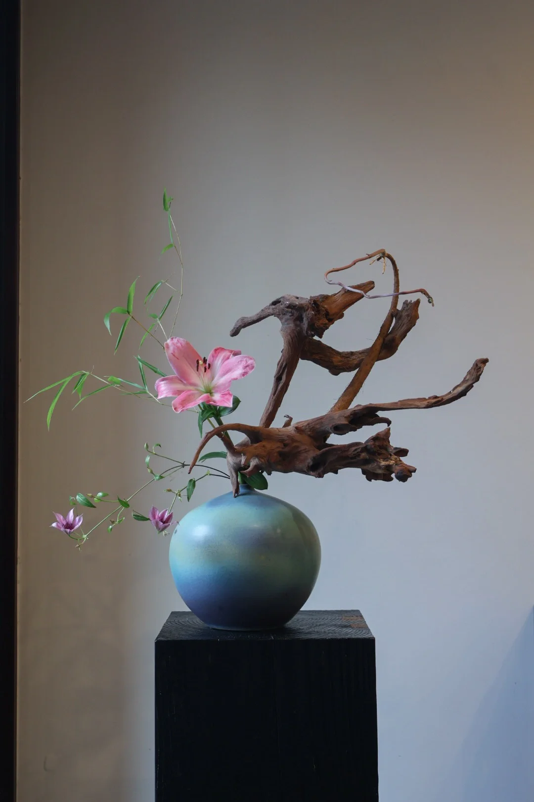 肌理之美 花材/百合、山药、竹、铁线莲、木薯藤 挑战插10000个作品后的成长,今天第4⃣️个,记录留存。
