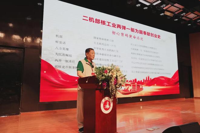 宋京波以《二机部核工业两弹一艇为国奉献创业史——初心密码使命必达》为题,娓娓讲述父辈们在二机部投身“两弹一艇”事业的艰辛历程,那些默默无闻的坚守,凝结着老一辈建设者的赤诚担当与无私奉献。最后,他还为师生解密了核工业相关的数字代号,例如:401即中国原子能科学研究院,504即兰州铀浓缩厂……