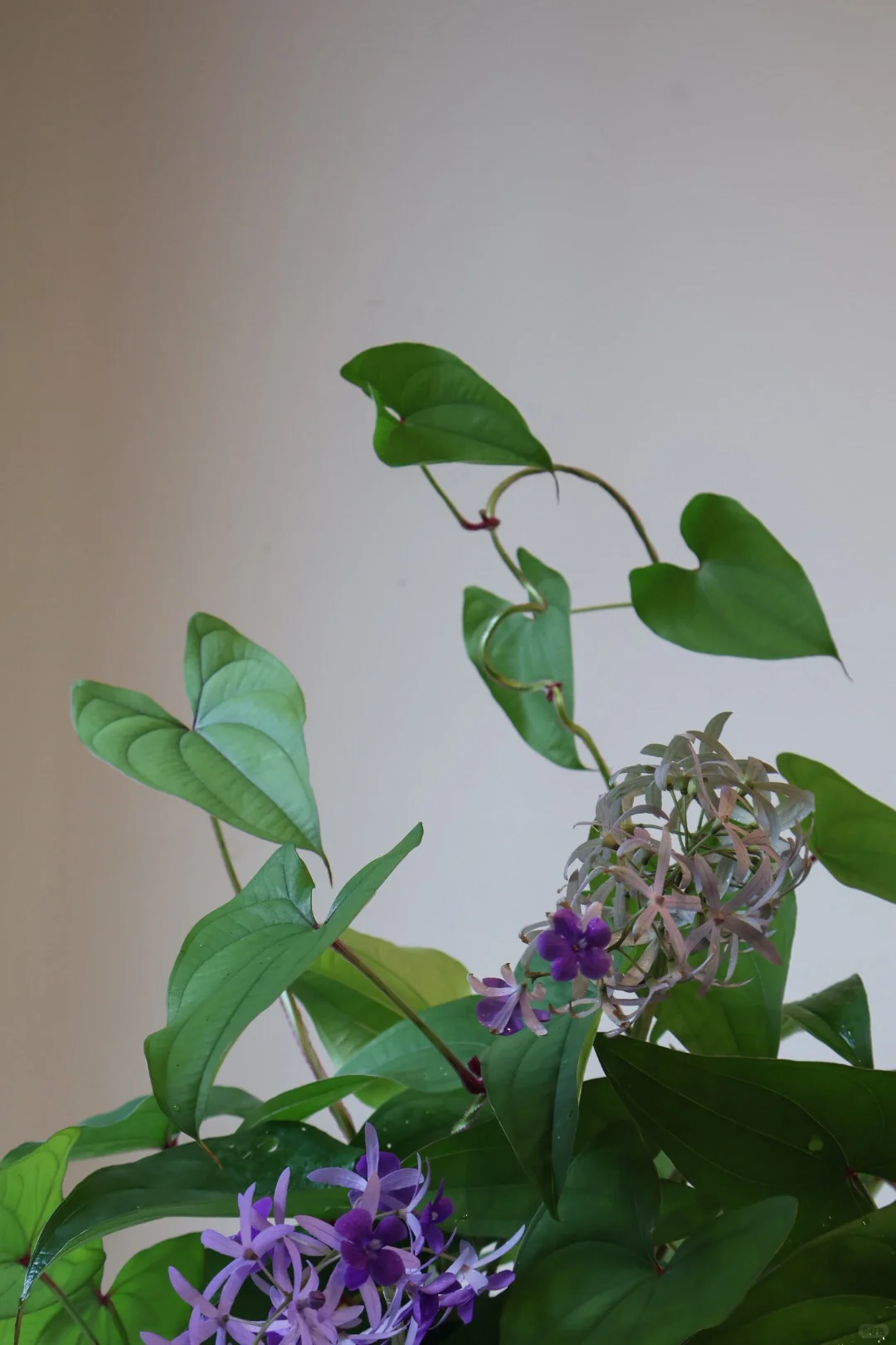 好不容易开了2小串蓝花藤,天天下雨,花都被淋惨了,剪下来近距离欣赏你的美。 挑战插10000个作品后的成长,今天第1⃣️个,记录留存。