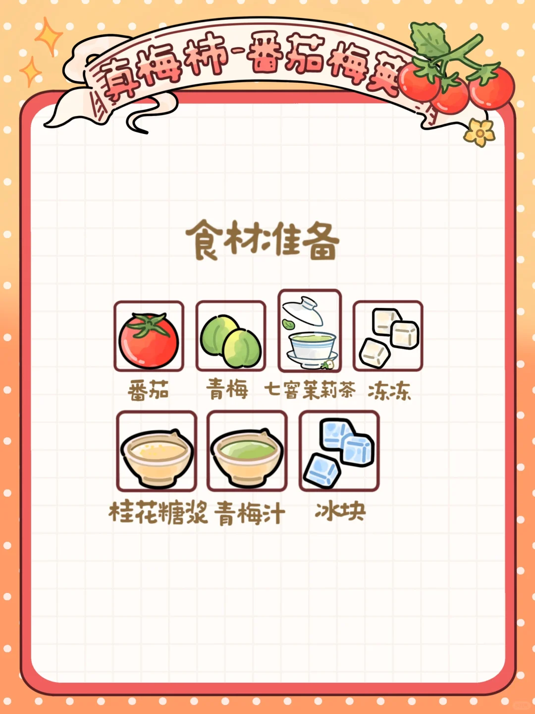 青梅|番茄🍅|冻冻|七窨茉莉茶🍵|桂花糖浆|青梅汁|冰块🧊