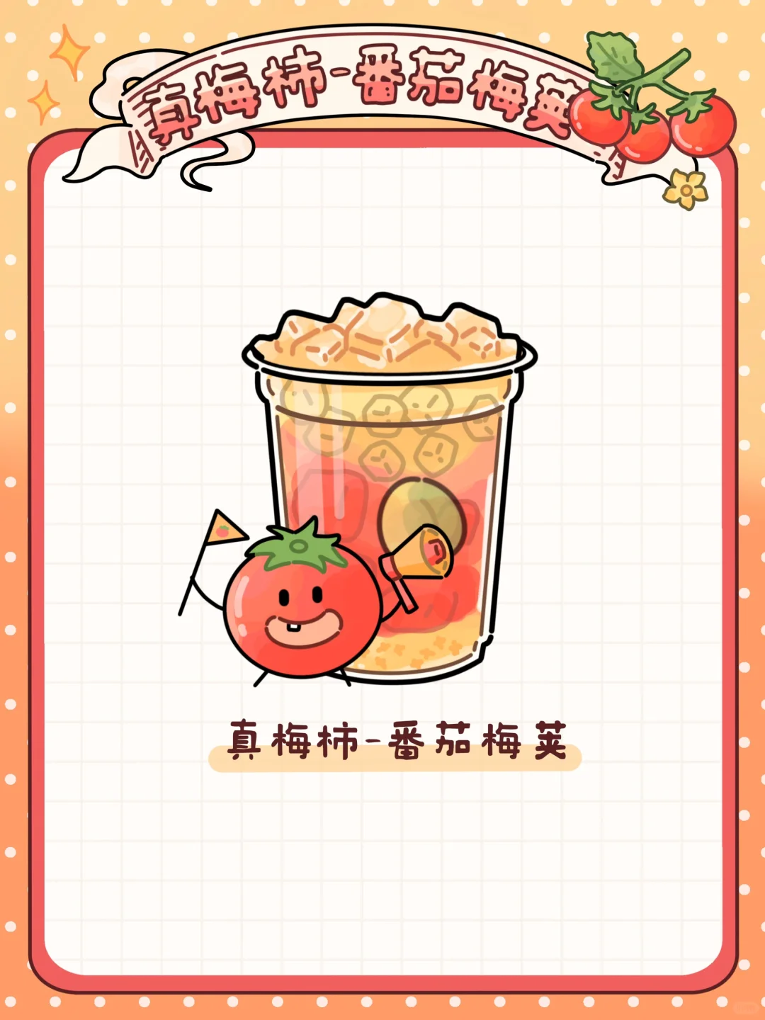 今日份夏日冰爽饮品真梅柿-番茄梅荚🍅来喽!谁懂啊😭刚上新的茶百道真梅柿-番茄梅荚就被我研究出来了💪青梅的酸甜清爽和番茄🍅的浓郁甜香太绝了‼️就是说茶百道可真有你的(被我研究出来了 我也棒😁)