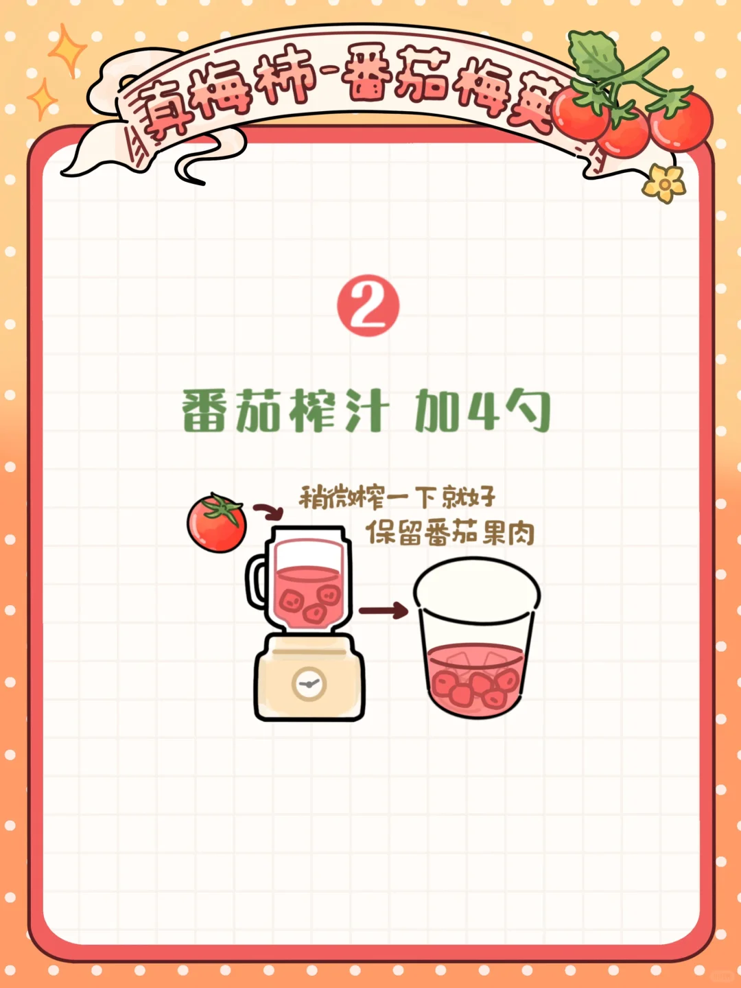 2️⃣新鲜番茄🍅榨汁(稍微榨一下即可 保留番茄🍅果肉) 加入四勺
