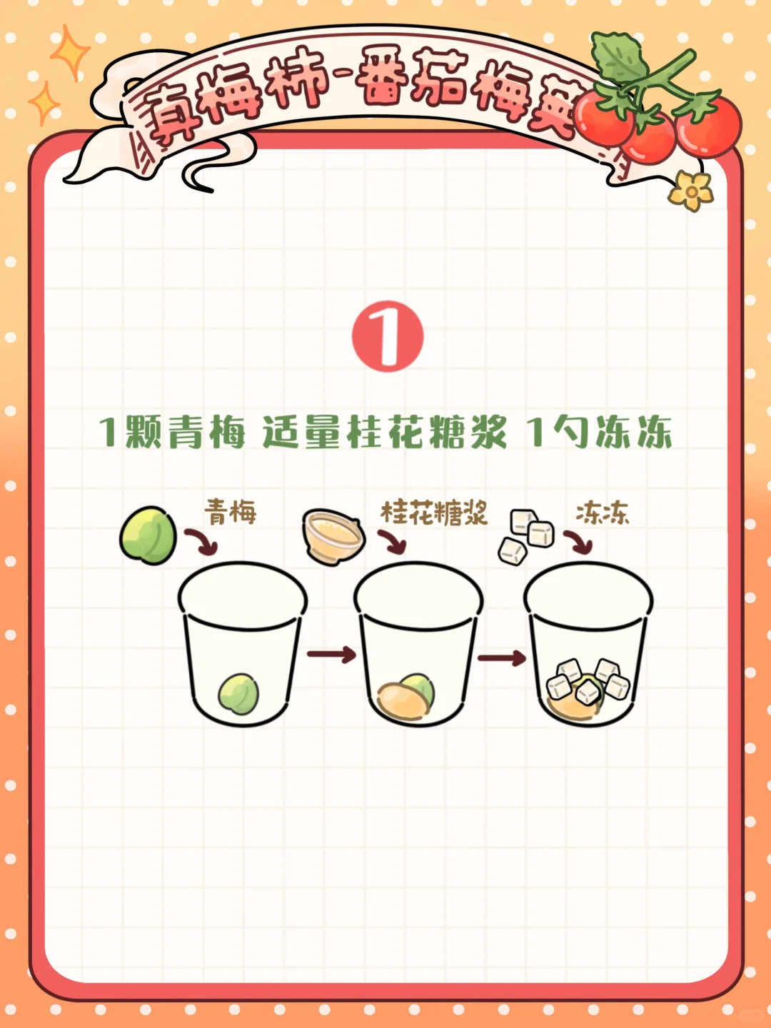 1️⃣一颗青梅加入杯中 倒入桂花糖浆少许和一勺冻冻