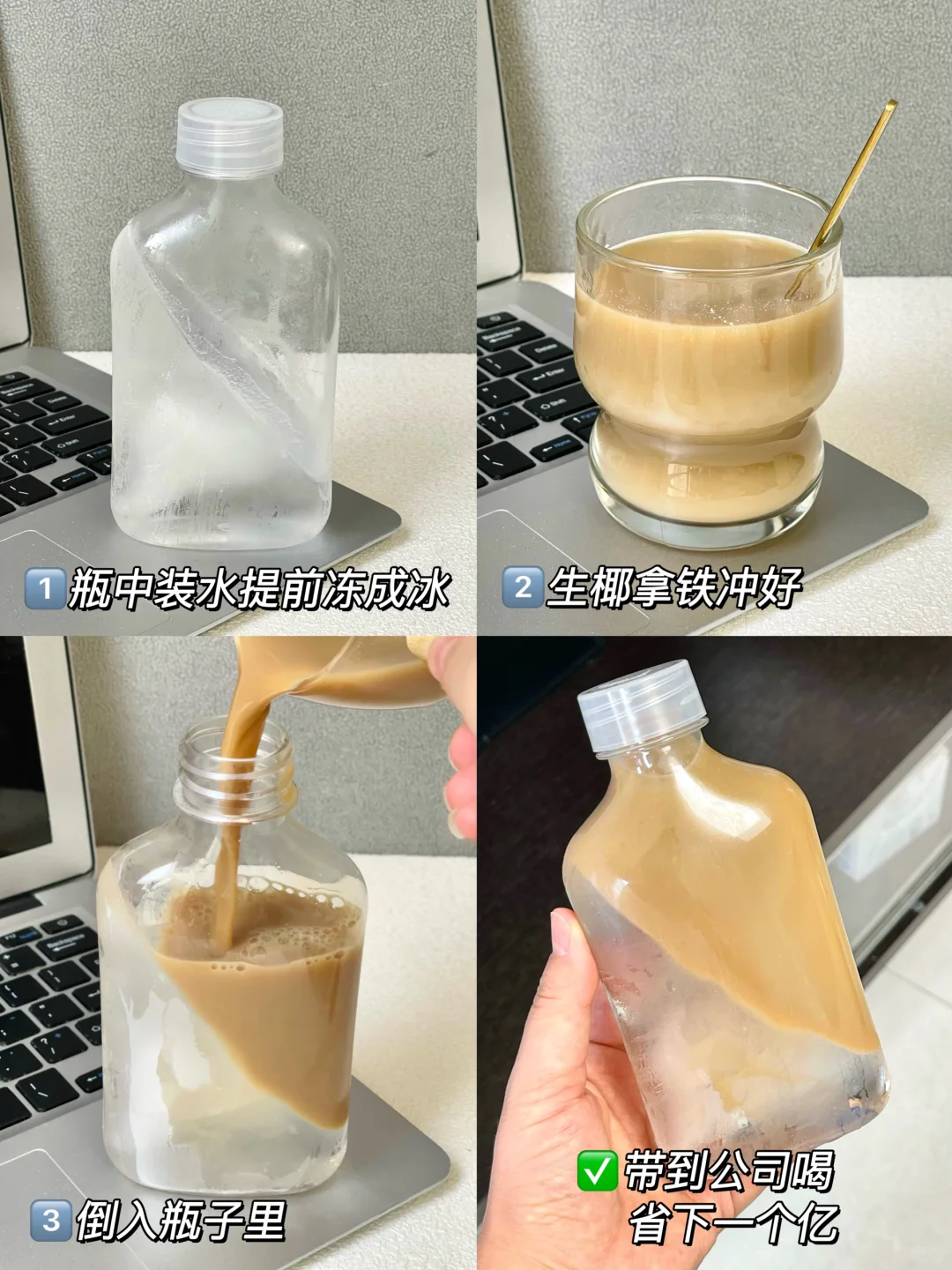 提前瓶子里装水放冰箱冻成冰,冲好的咖啡直接倒进去就行!!