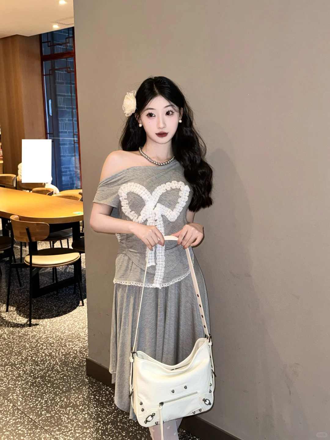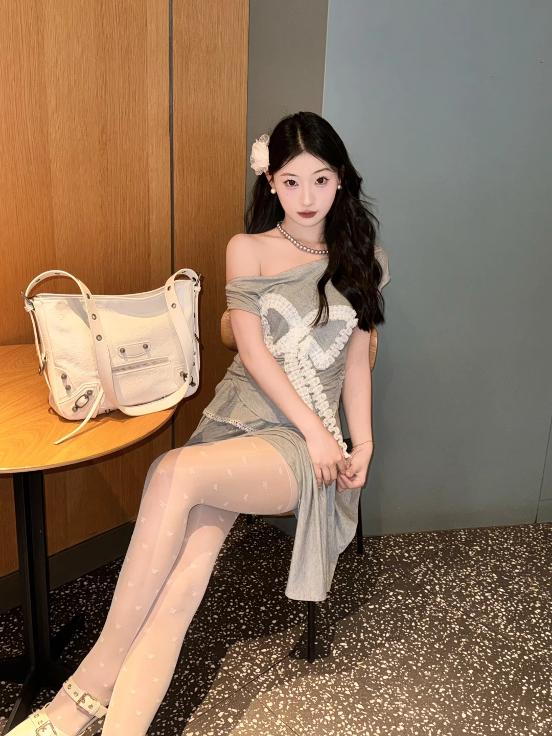 灰色蝴蝶结套装+蝴蝶结白丝 好温柔