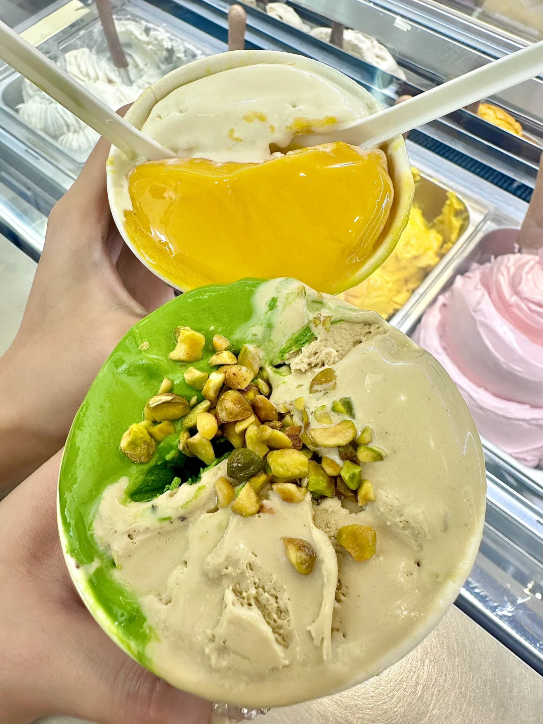 茉莉奶白终于开来福州了!!👋家gelato集合店!!全国只有福州有哦!!口味超多超好吃!打卡就可以0r领!!周边都是先到先得!!!质感超棒!大家快冲!!! - ✔️开心果茉莉椰 清香的茉莉花茶搭配椰子水和超细腻的开心果奶盖~好清爽啊!!咸甜交织!!真的好适合夏天!! ✔️粉茉针王 不愧是招牌!!一入口就是浓郁的茉莉花香~茶香四溢!回味悠长!!