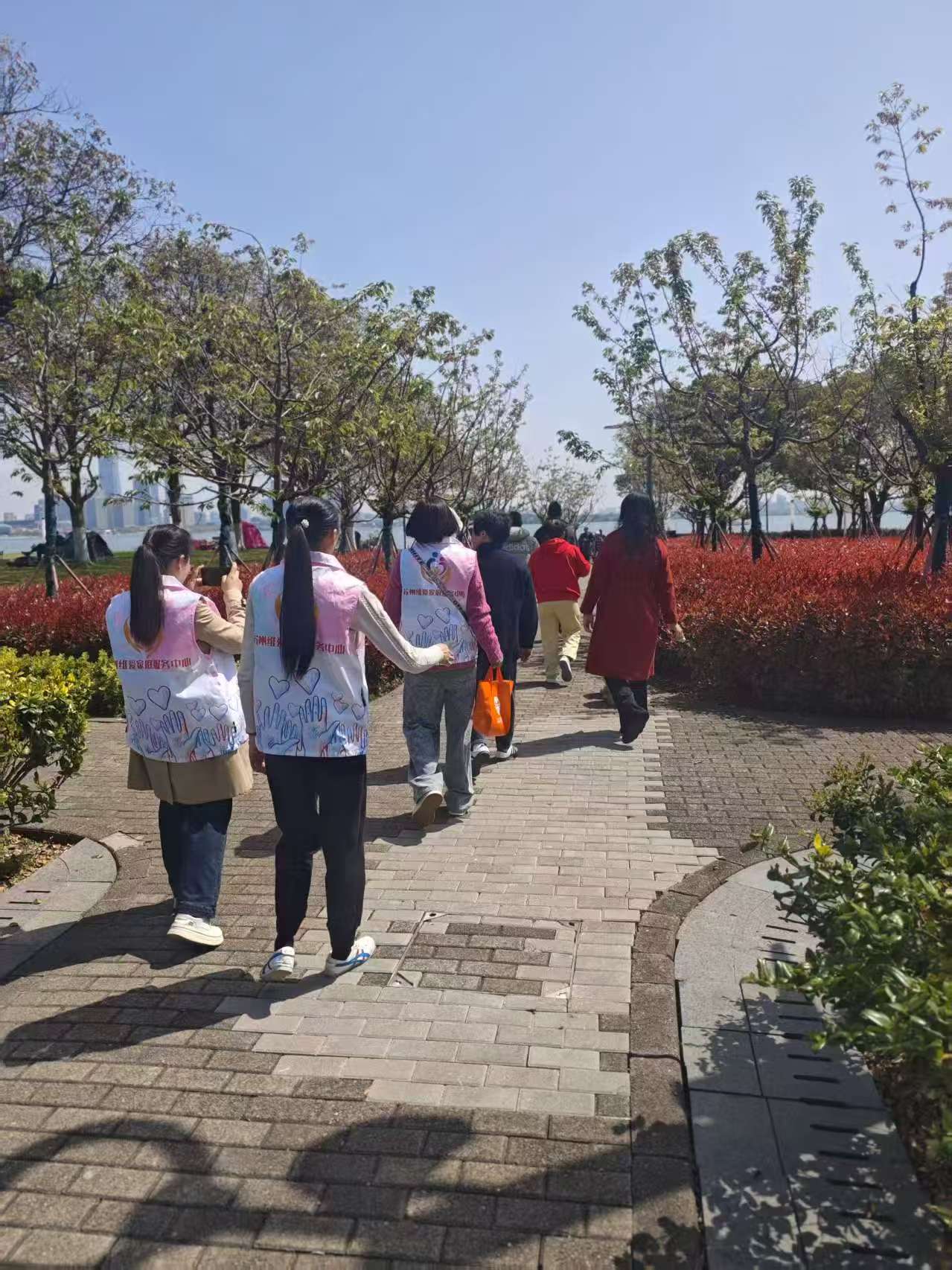 当队伍踏上金鸡湖畔的步道,春风拂面,草木生香。志愿者们牵着星宝的手,漫步在湖光山色之间,看碧波荡漾,听鸟语花香,让孩子们在大自然的怀抱中尽情舒展、自由呼吸。从游客中心的科普宣传,到亲子互动的暖心陪伴;从非遗手工的创意体验,到户外踏青的自在畅游,每一个环节都藏着满满的用心:工作人员用通俗易懂的语言普及孤独症知识,破除公众的认知误区,让更多人读懂“星星的孩子”的世界;志愿者们全程贴心陪护,为星宝们保驾护航,为家长们分担照护压力,用专业与温暖,为孤独症家庭搭建起坚实的支持网络。