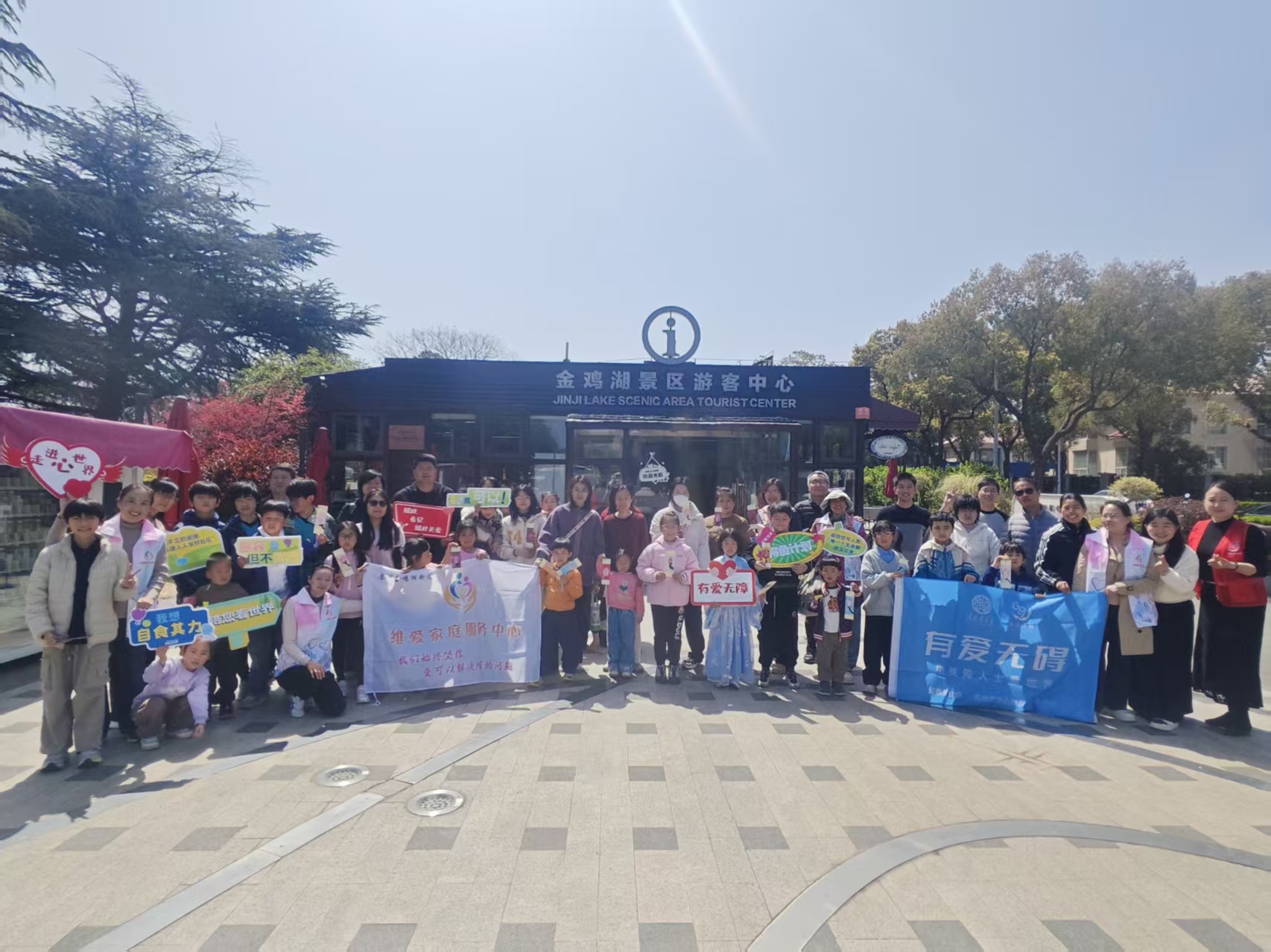 在金鸡湖景区游客中心前,当所有参与活动的家庭与志愿者们合影留念,手中“有爱无障”“走进心世界”“我很自豪其力”的标语牌熠熠生辉,每一张笑脸都洋溢着幸福与希望。对于星宝们而言,这是一次走出家门、拥抱世界的勇敢尝试;对于家长们而言,这是一次被理解、被温暖、被赋能的心灵慰藉;对于志愿者们而言,看着孩子们眼中的光越来越亮,便是所有付出最珍贵的回报,那份欣慰与感动,早已化作心底最柔软的力量。