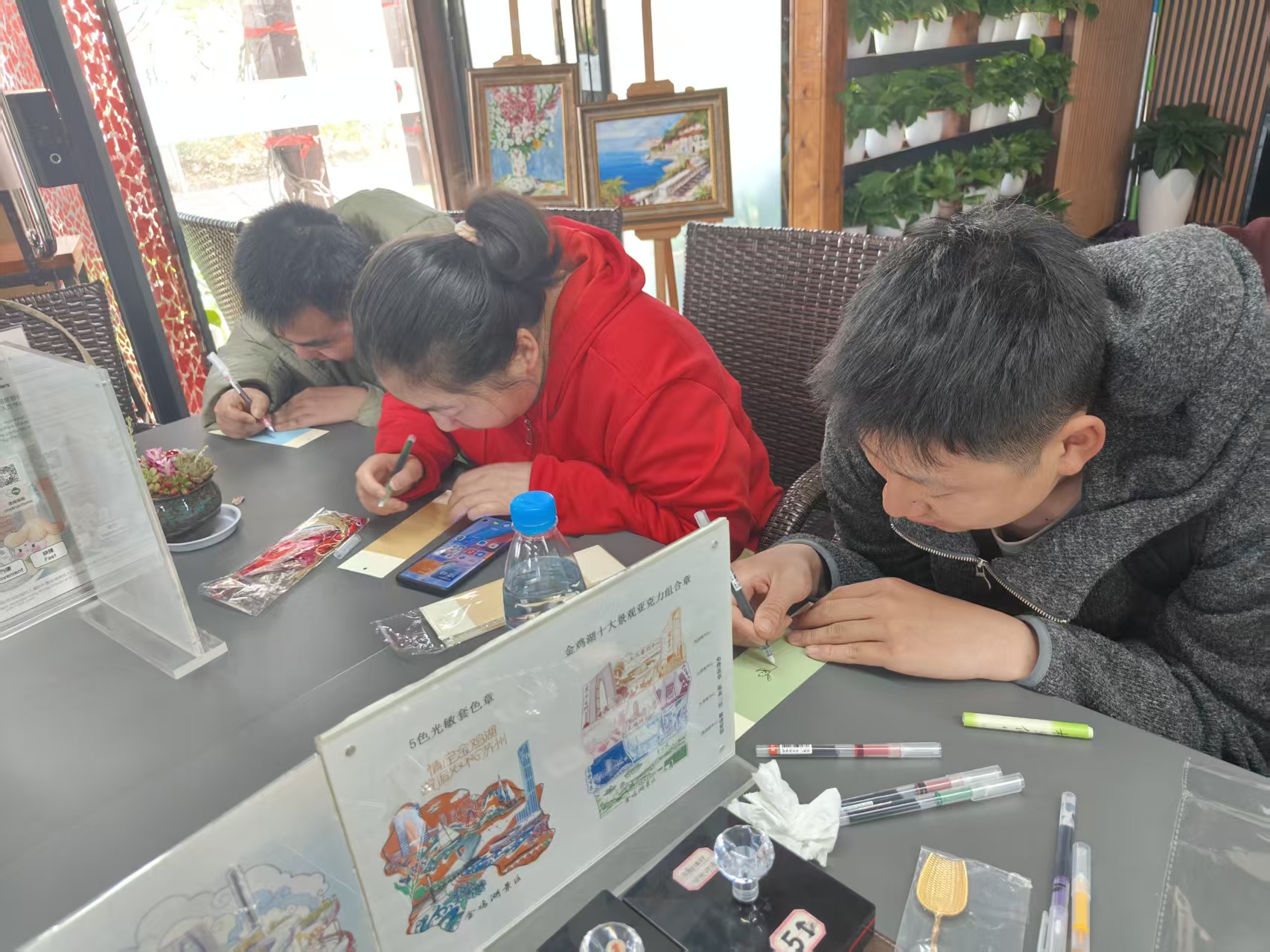 活动现场,每一个瞬间都写满了温柔与治愈。在充满艺术气息的手工工坊里,星宝们握着画笔,在金鸡湖十大景观套色章上认真创作,一笔一画间,是他们对世界最纯粹的感知;志愿者们俯身陪伴,耐心引导,用温柔的话语、鼓励的眼神,驱散孩子们内心的胆怯,让创意在指尖绽放,让笑容在脸上盛开。那些曾经怯生生的眼神,渐渐变得明亮;那些曾经紧闭的心扉,慢慢向世界敞开,每一张灿烂的笑脸,都是春日里最动人的风景。