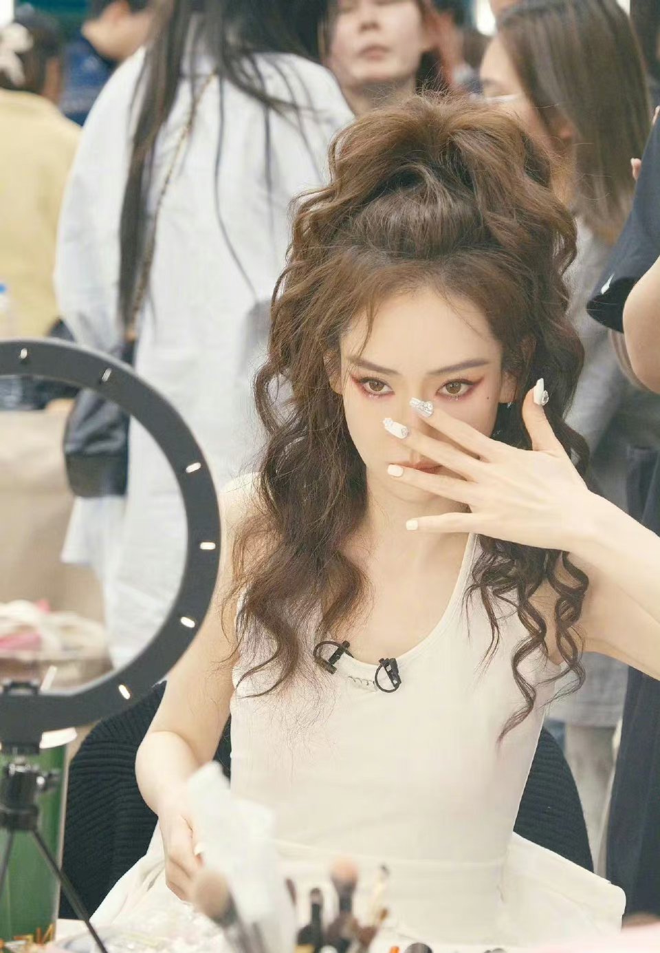 #戚薇的手是调色盘吧# 王琳说过乘风《青花瓷》的舞台美甲全都是戚薇买来的,非常细