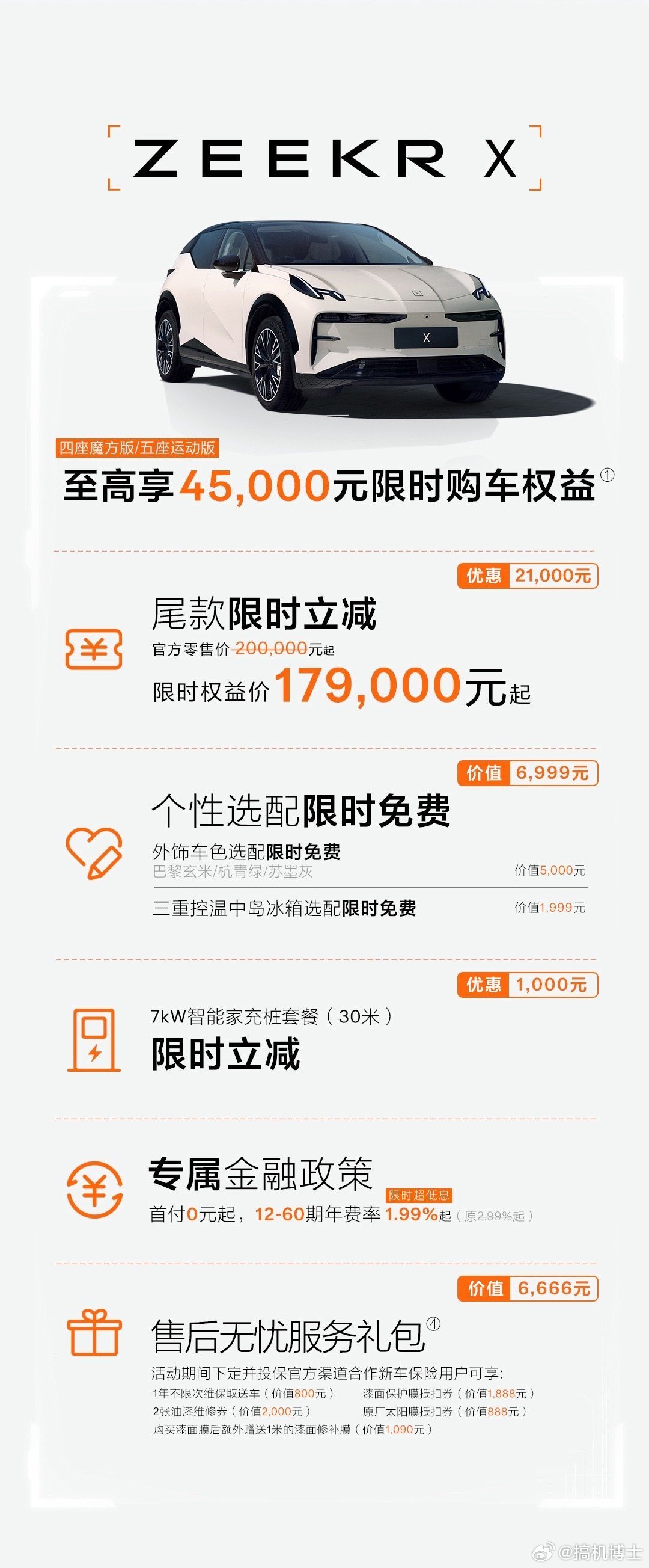 #2025款极氪X上市17.9万起# 极氪X 2025款焕新上市,车虽小,功能可真不少,零百加速3.7秒,CLTC续航里程最长560公里,支持AD智能驾驶辅助系统,前后可移动中岛,副驾零重力座椅,自动泊车等。本次升级优化100余项细节,新增30余项功能,有四座魔方版与五座运动版两种可选,售价17.9万起,还有现金直减等多项购车限时权益,总计最高45000元,心动了么[开学季]