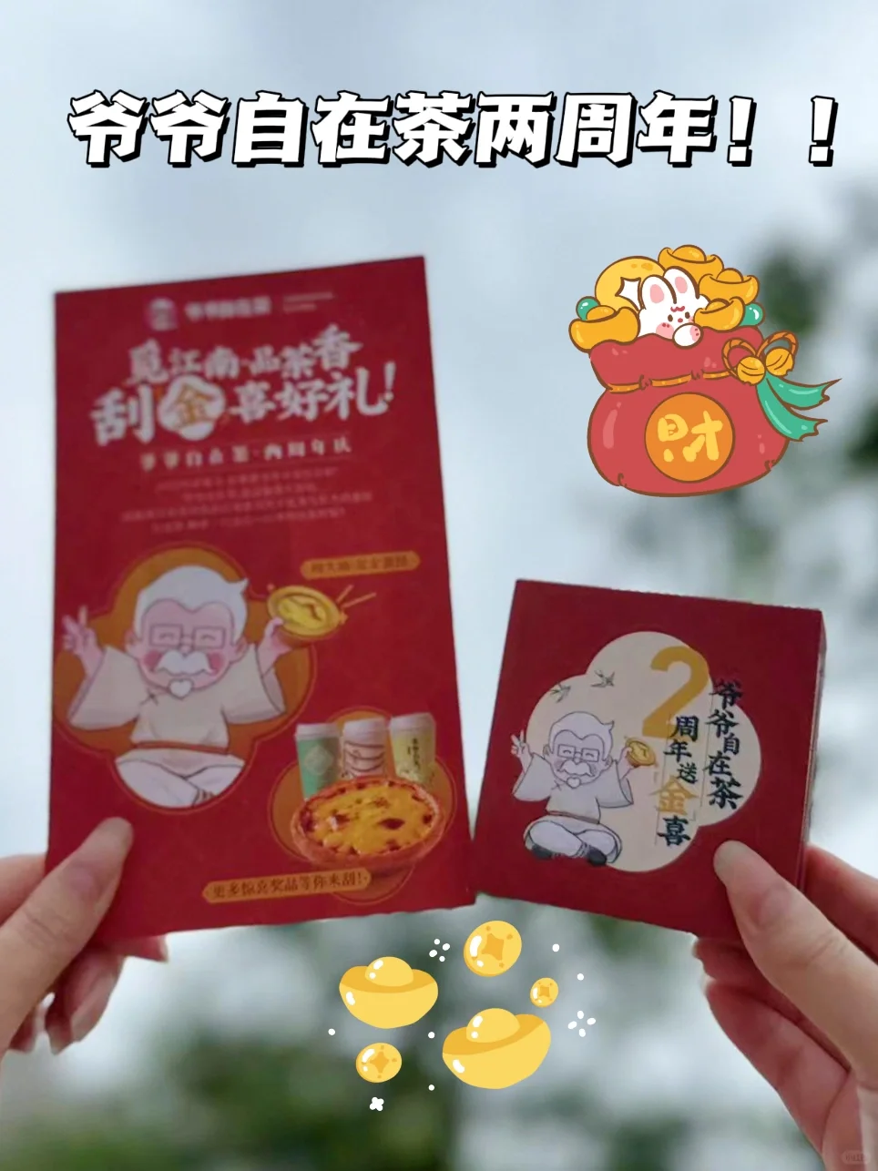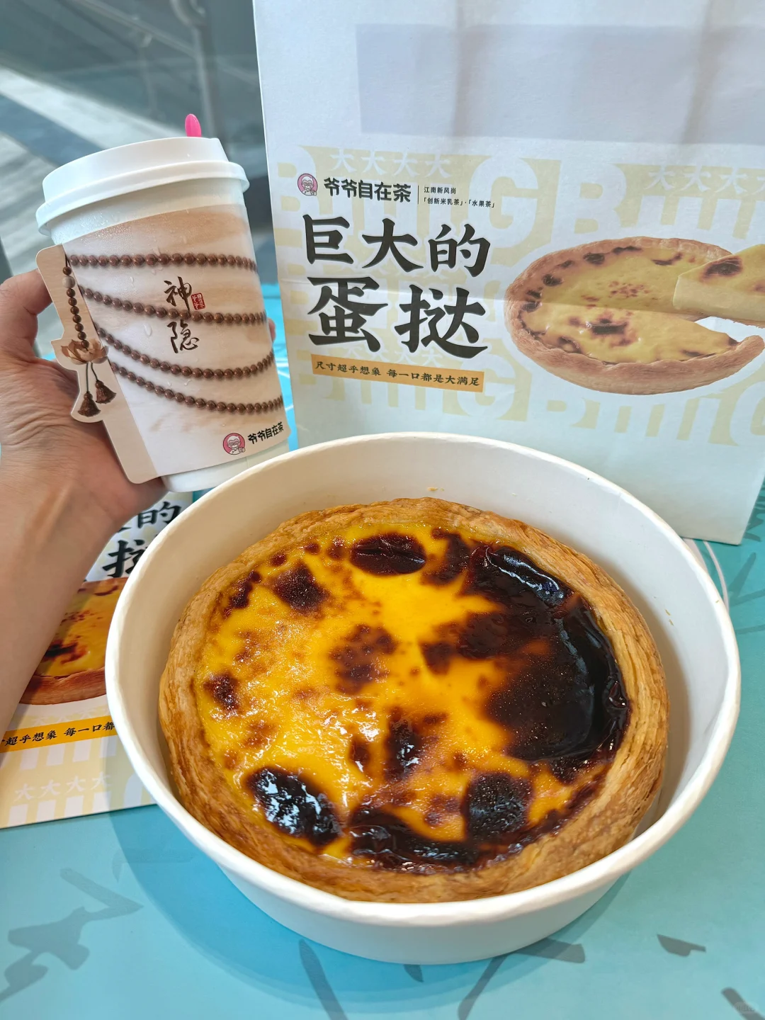 听说了吗,家人们!!爷爷自在茶2周年活动 平时经常喝他家的奶茶,每次都没踩雷,这次活动真的好心动!我先冲了!!🥹🥹 ✅买巨大的蛋挞➕茶饮套餐 🉑得刮刮乐一张,即有机会赢纯金蛋挞手串📿 金蛋挞手串好好看啊🥹 蛋挞敲级大一个,跟生日蛋糕一样大🤤🤤而且香味浓郁,一整个大满足! 活动时间:6.29-7.21 (每个周六周日) 赶紧冲冲冲!