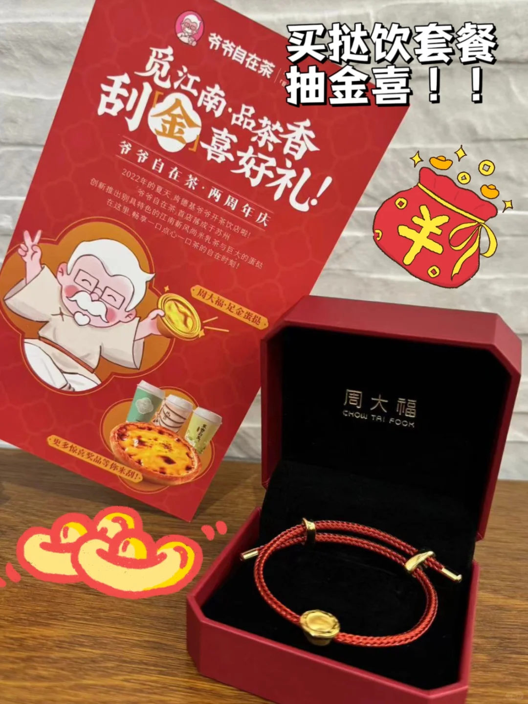 这也太划算了吧!买蛋挞还能有机会得纯金手串,我已经迫不及待要去爷爷自在茶打卡了