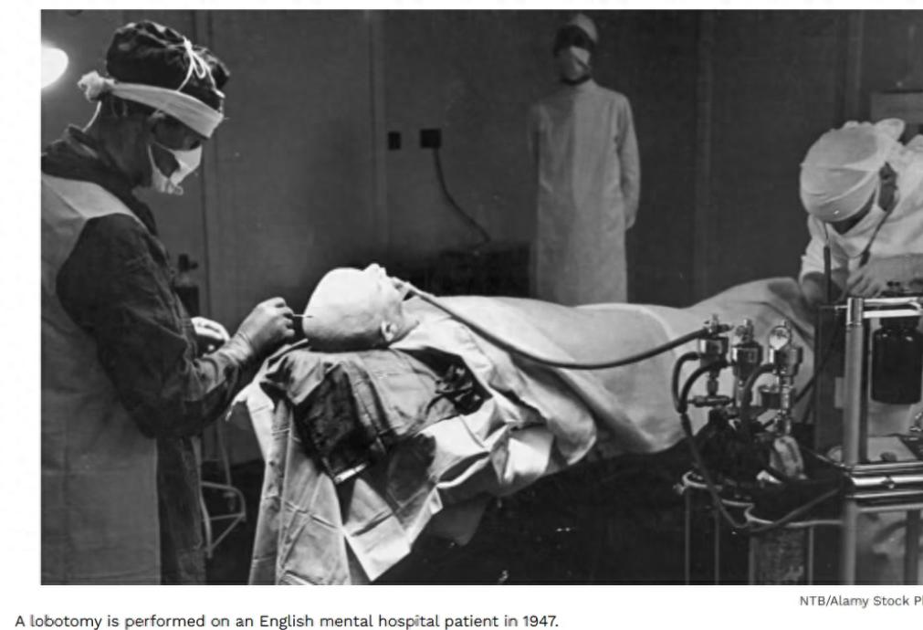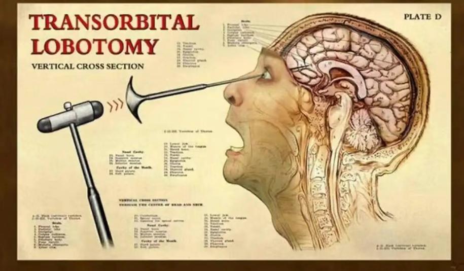 前额叶白质切除术——这是一种上世纪流行、用来“治疗”精神分裂症、严重强迫症等障碍,后来因严重影响患者情感和认知而被废止的手术。