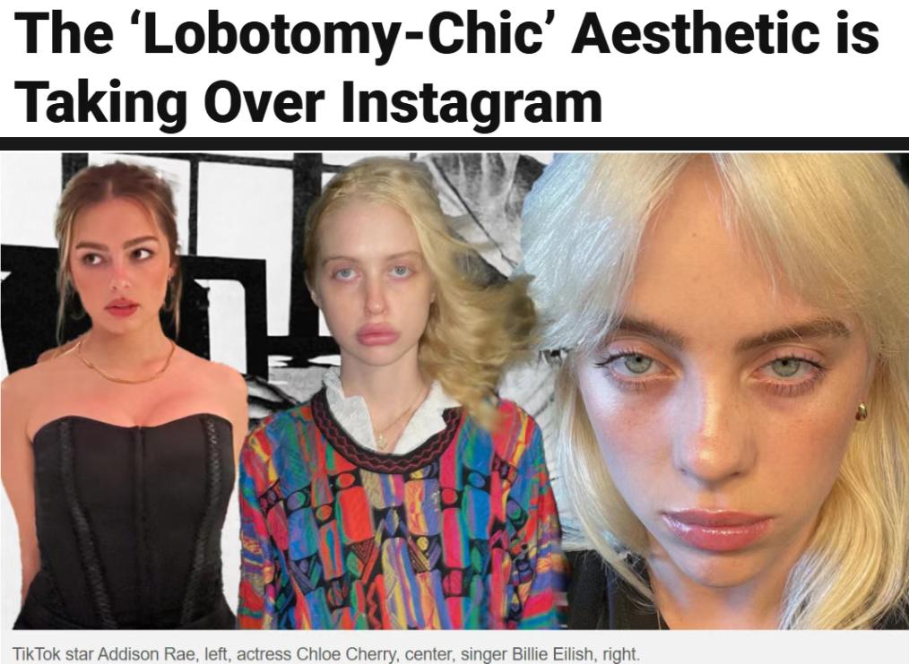 近年来,这种被称为“脑叶切除风”(Lobotomy Chic)的妆容和拍照风格,在欧美不少年轻人中非常流行。中国也有不少年轻人在跟风。