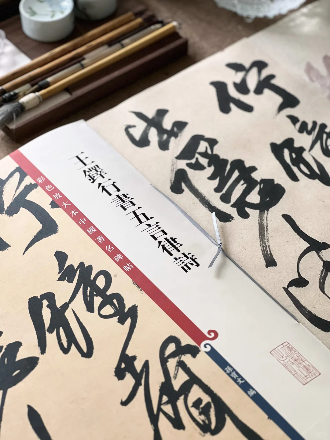 全部写完一遍,再从头来过,能感受到王铎强烈的气息变化,从一开始的慎重起笔到逐渐狂放老辣。慢慢自己的手也熟了,本想挑出几页没有写好的纸重新写,一不留神几乎全部重新写了一遍,对比两次写的,力道有非常明显的进步。那种大气洒脱,淋漓痛快的气质,慢慢也附着一些在自己的笔下了。