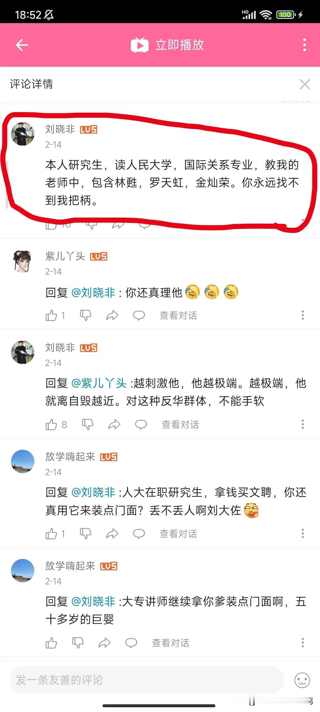 700万粉丝的成教老师啊,你到底是哪所大学毕业的啊?南京大学是南京大学,南京航空航天大学是南京航空航天大学,这可是互不统属的两所大学,虽然它俩都在南京,都是211和985的双一流大学。 仗着700万粉丝就膨胀得不要不要的成教老师平时动不动地把“理科生严谨,文科生垃圾”的话挂在嘴边,大搞文理对立,或者说是搞“贬低文科生,抬高自己”的把戏。那么问题来了,你研究生为啥选的是人民大学国际关系(文科)专业呢?这是不是自打脸呀?对了,毛主席可是文科生,他的理科成绩不好,这并不妨碍他成为世界公认的伟大战略家。 肥鹅寻思着,成教老师恐怕是整不明白国际关系,不然为啥连卢沙野大使的言论都看不懂呢?当然了,他也可能是揣着明白装糊涂,目的只是为了挣美国主子撒的狗粮,不然为啥美国一有负面消息,他就火急火燎地跳出来洗白呢?一有负面消息,就火急火燎地跳出来洗白呢?一有负面消息,就火急火燎地跳出来洗白呢?