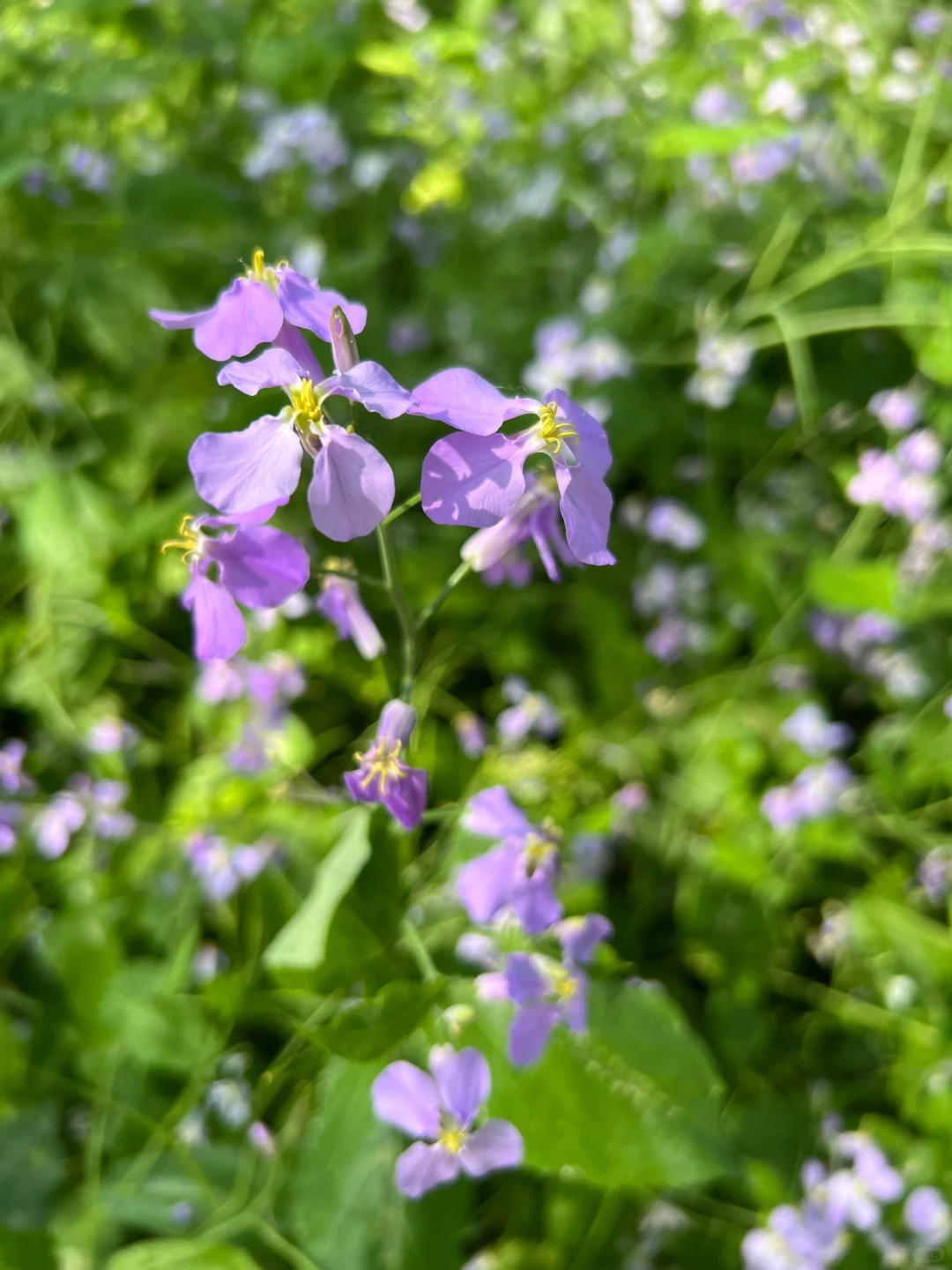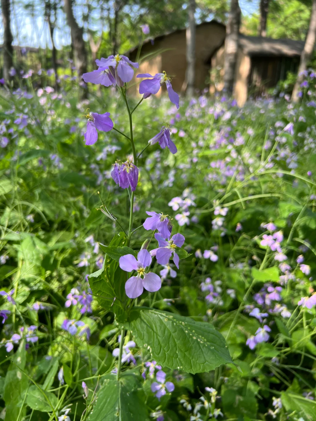 沿着野鸭岛边的北湖大草坪,继续向北前行,登上小山坡,就来到了观赏二月兰的佳境。