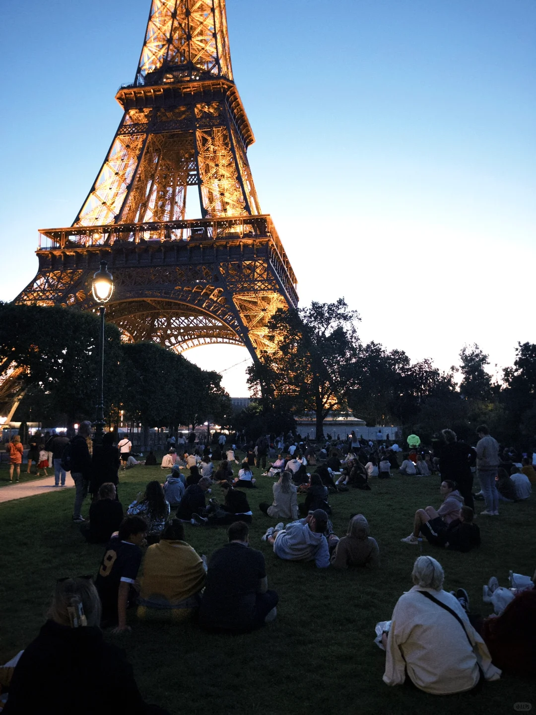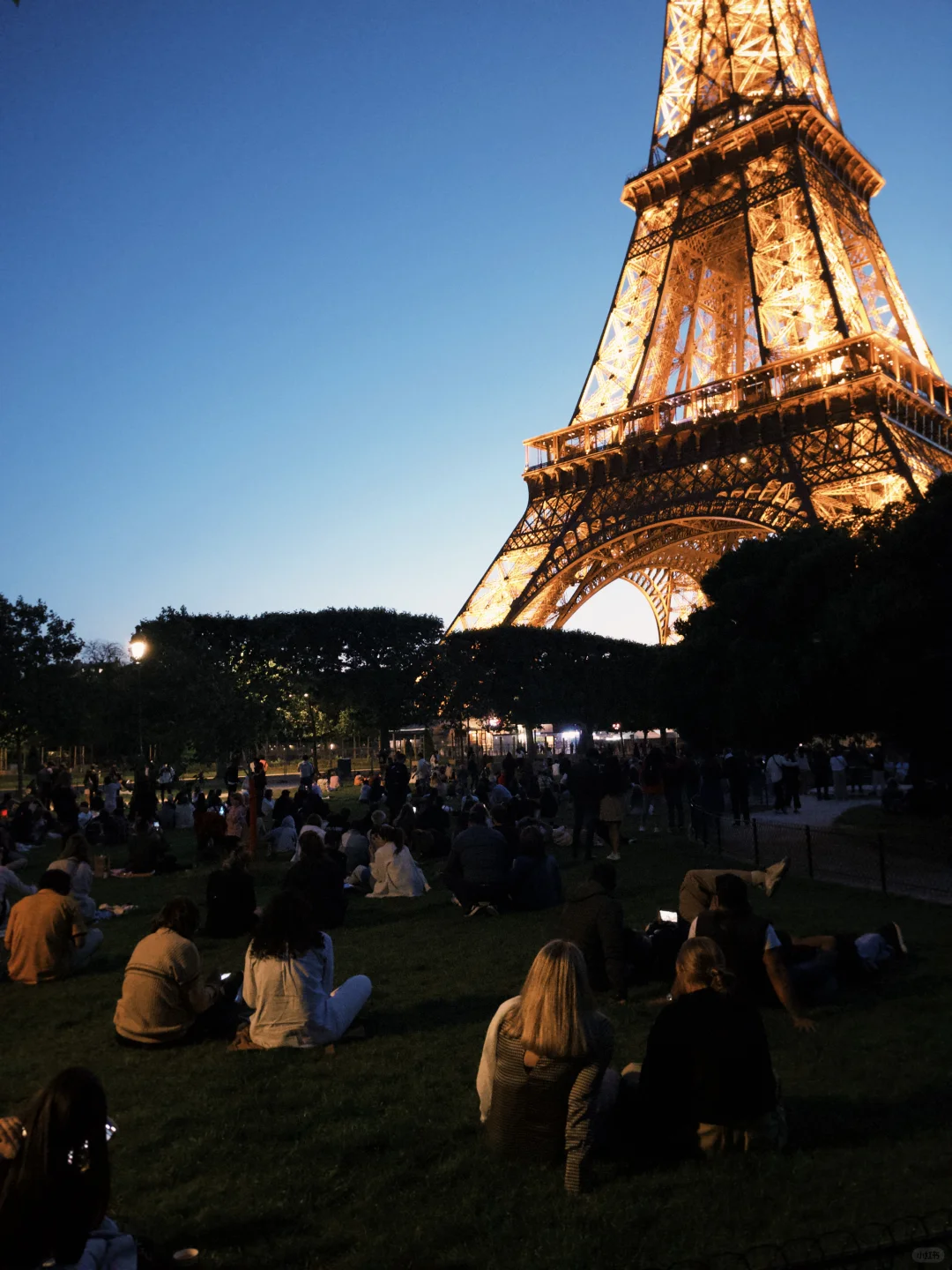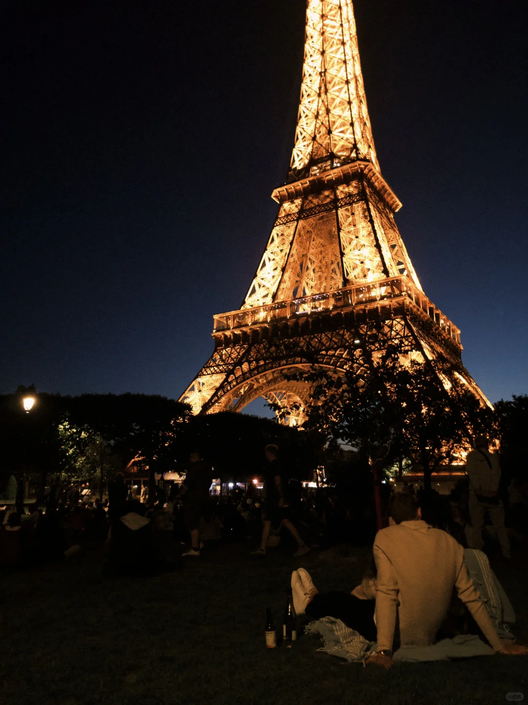 每次给国内来的朋友做“地陪”时都避不开埃菲尔铁塔,除了在河岸观塔拍照外,最近天气回暖,也可以在草地上吹着风,和几百人一起等铁塔亮灯闪光🌉 现场有卖酒的,但超市2欧的rosé他们卖35欧😂可以在超市买好自行带来~ 地图直接搜Jardin de la Tour Eiffel就能找到(图10)现在天黑的晚,基本十点左右才开始亮灯,十一点整点开始闪。