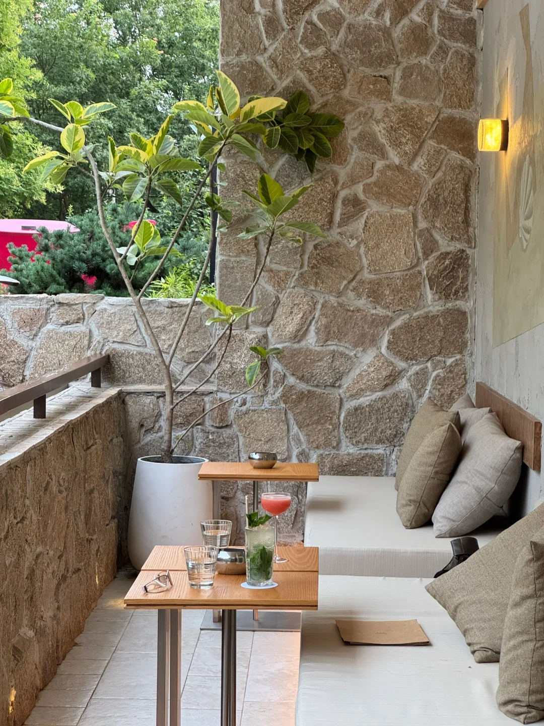 因为环境真的很美!小甜酒也清透好看~ 藏在绿意里有点世外桃源小清迈的感觉!!