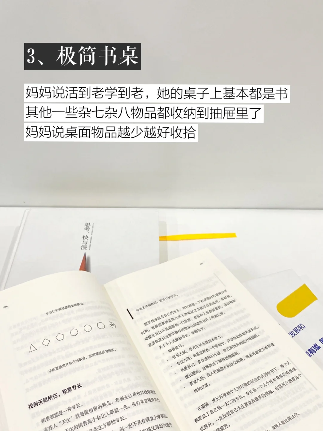 妈妈说活到老学到老,她的桌子上基本都是书,其他一些杂七杂八物品都收纳到抽屉里了