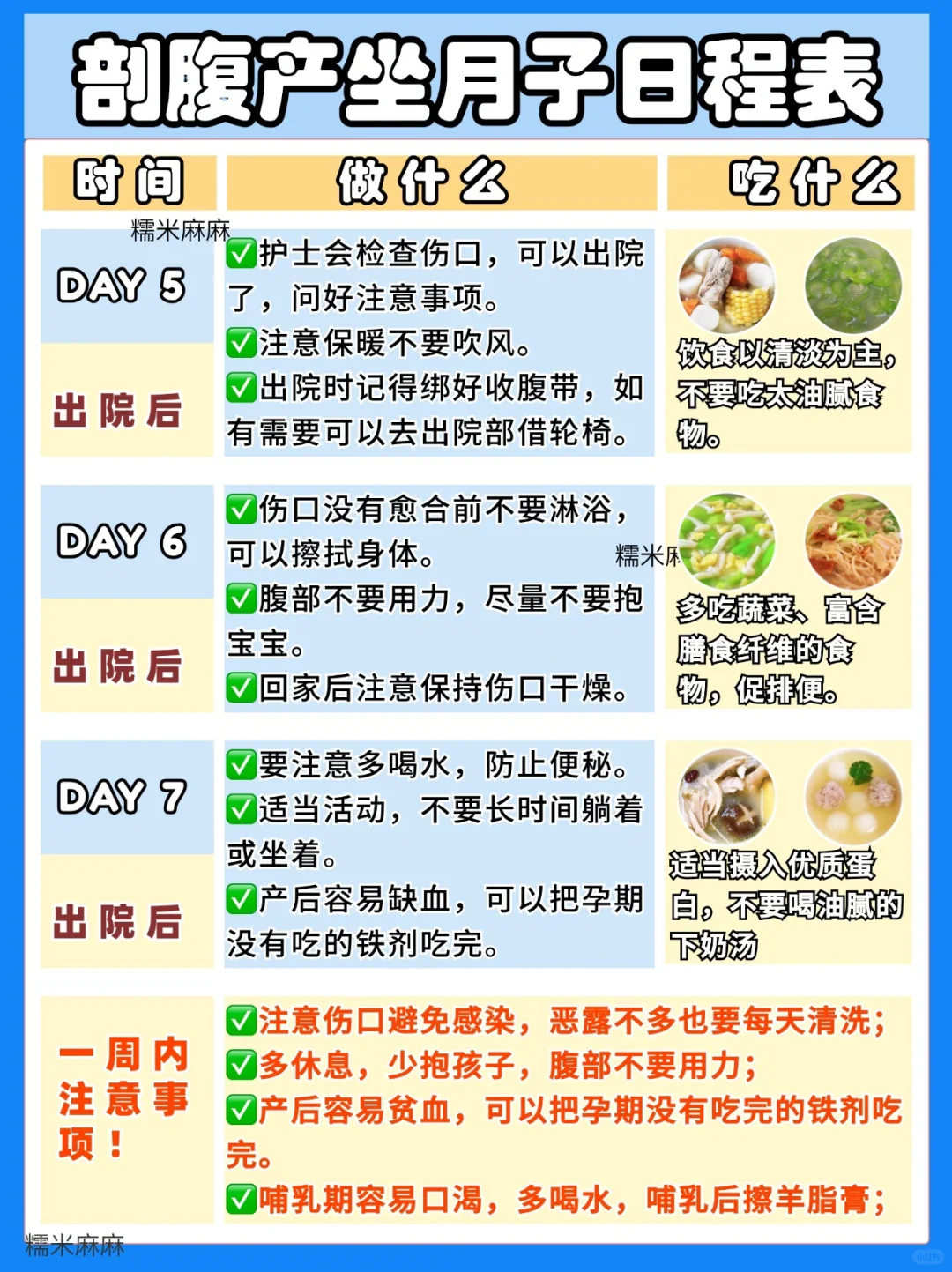 42天剖腹产坐月子日程表⚠️每天护理+饮食