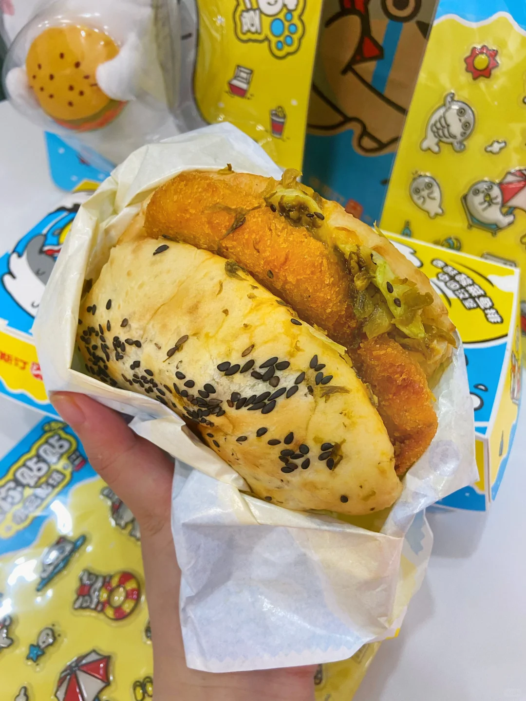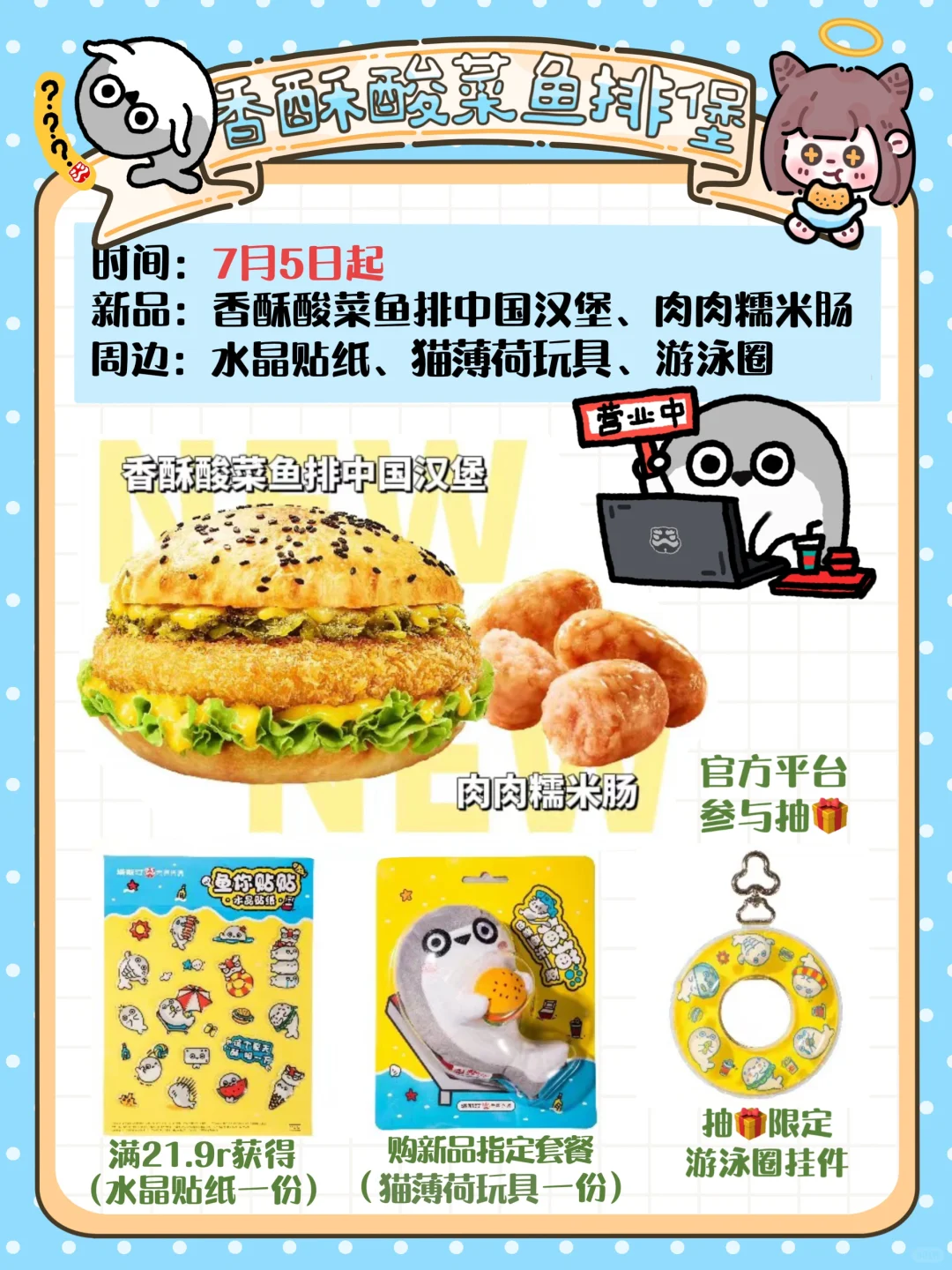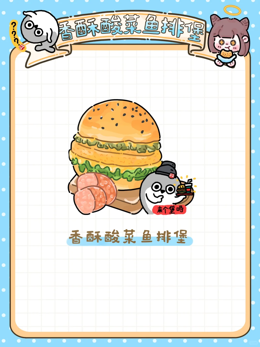 就是说真的很懂咱们中国宝宝的胃😭香酥酸菜鱼排堡想想就流口水🤤酸爽鲜辣的酸菜➕厚实鲜美的香酥鱼排🐟不敢想一口下去我是多么活泼开朗的小女孩👧(这次和猫薄荷鱼联名还能得到超可爱的小🎁哦~)