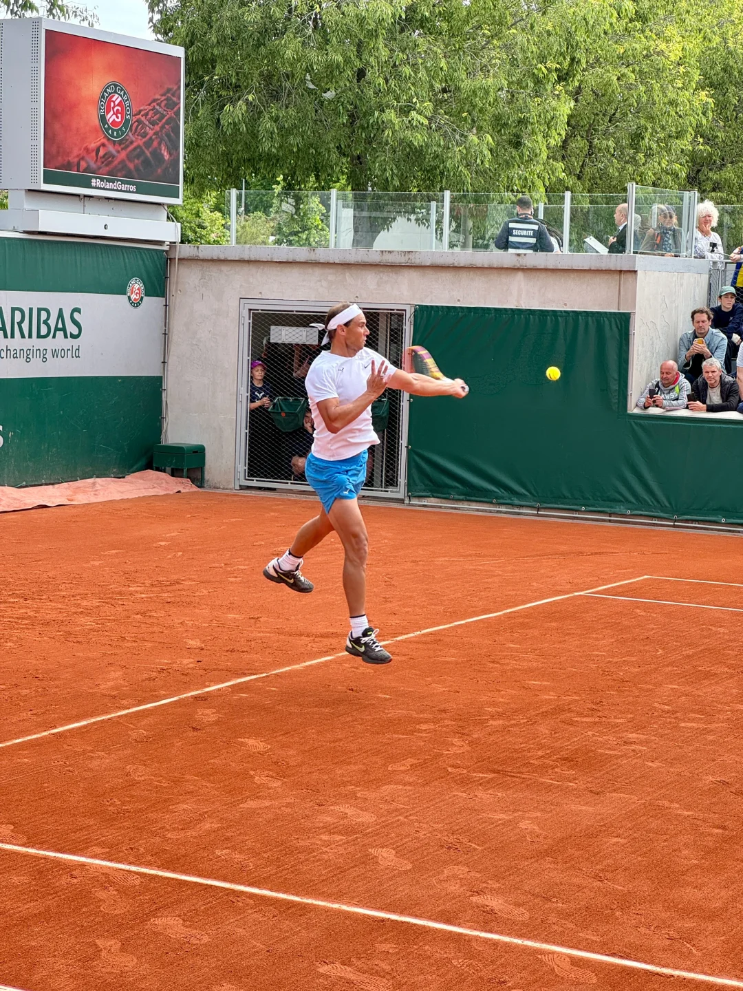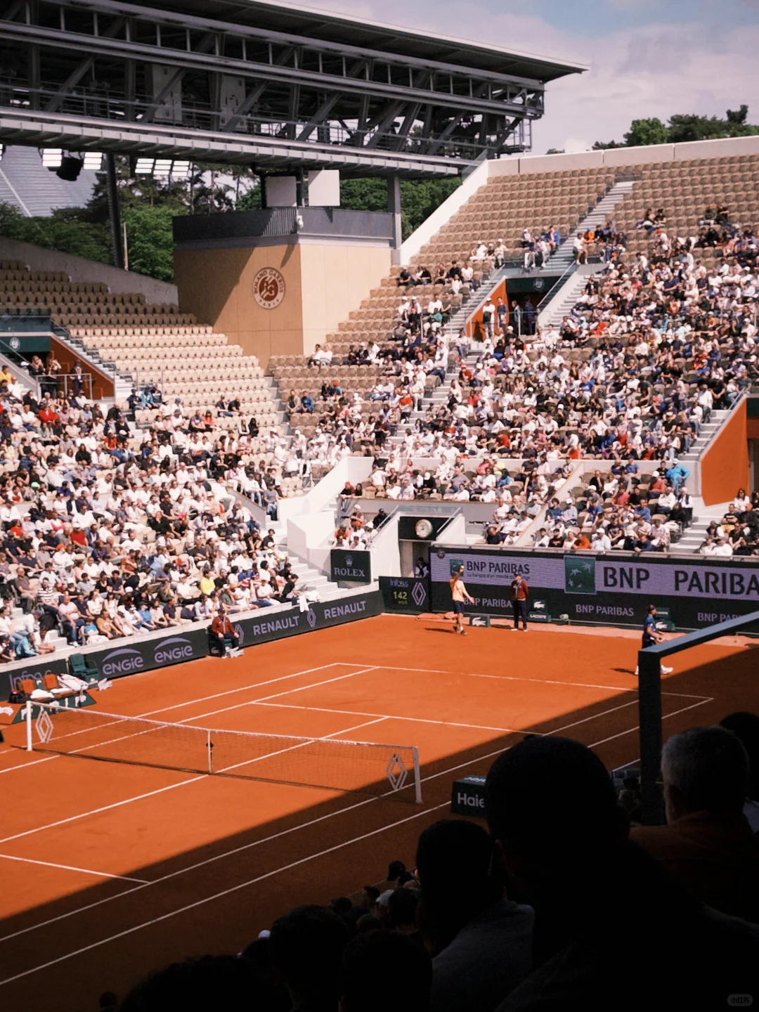 🎾法网day1很开心!袁悦真人超nice!! 终于当面问了职业球员”掉拍头时拍面到底应该平行地面还是打开“这个困扰我很久的技术问题😭(见4月20网球视频 法网即使是资格赛也很精彩,时常有210+的发球出现,现场气氛和音乐配合超好,比如球员 challenge 落点的时候会放斗牛舞曲,超好玩!(请等我之后vlog)而且看到了纳达尔和辛纳在训练,希望纳豆能打过紫薇多打几轮😂! 👕🩳👟Total Look: Wilson
