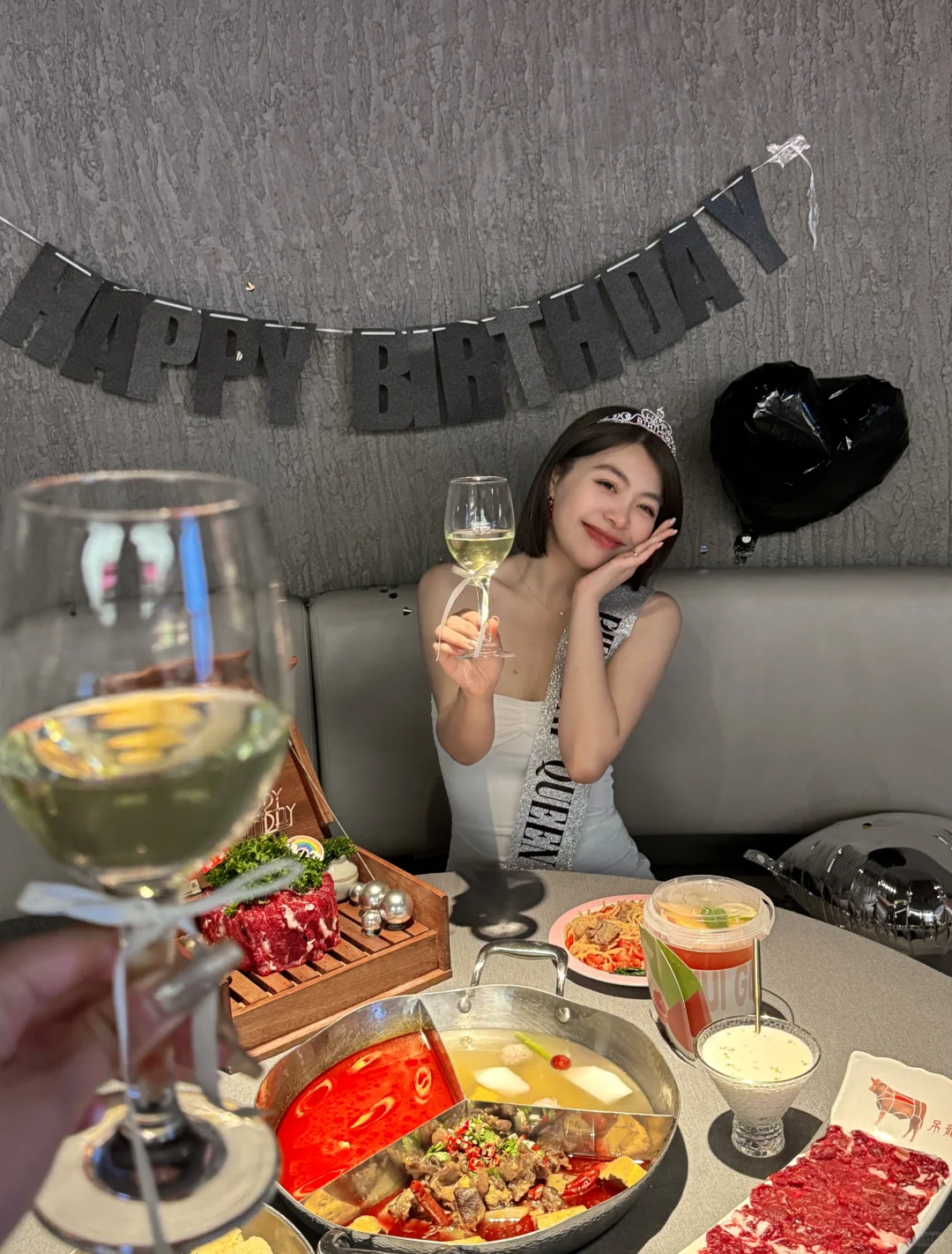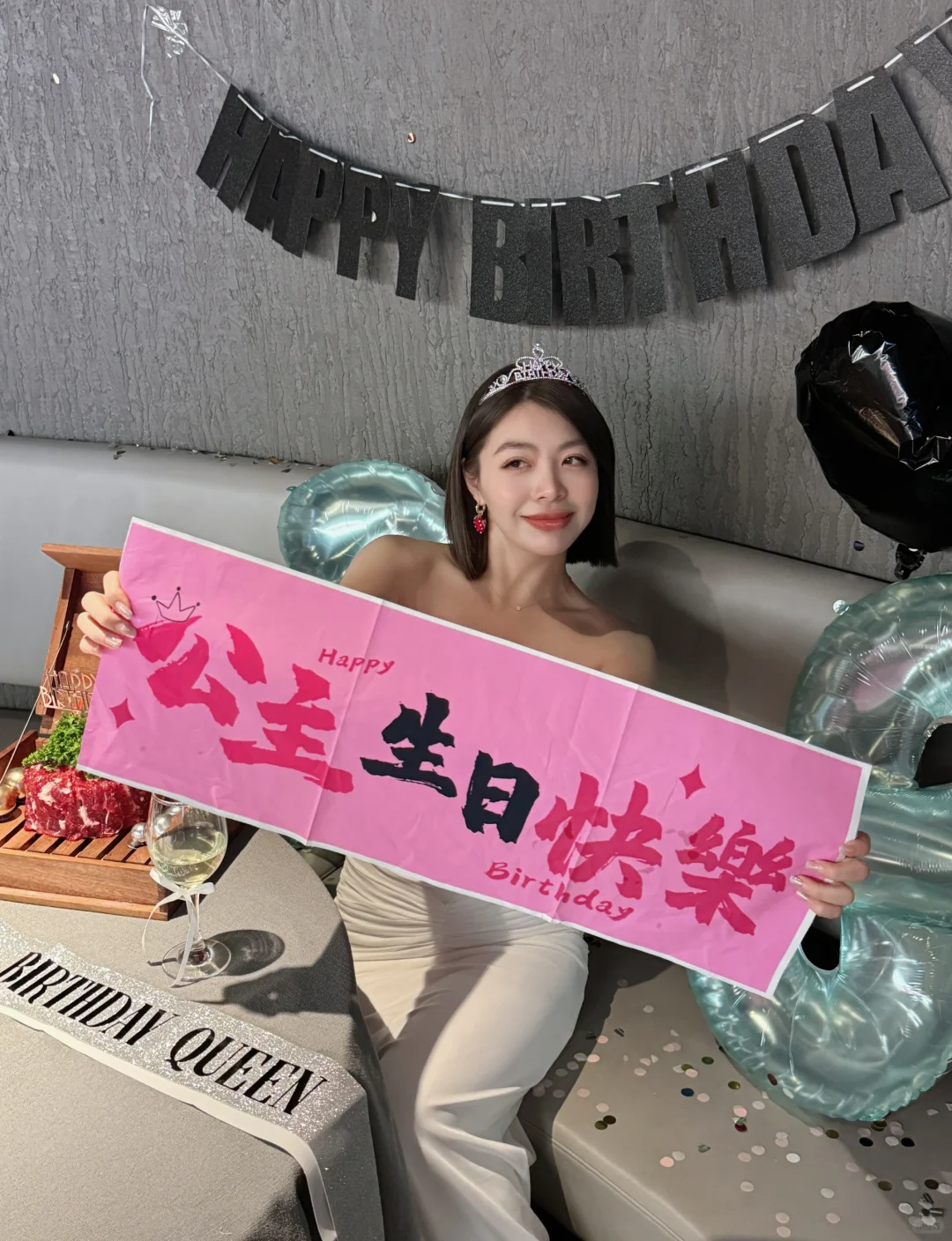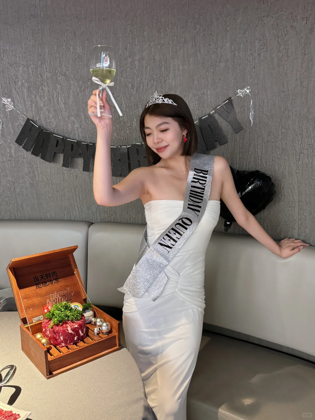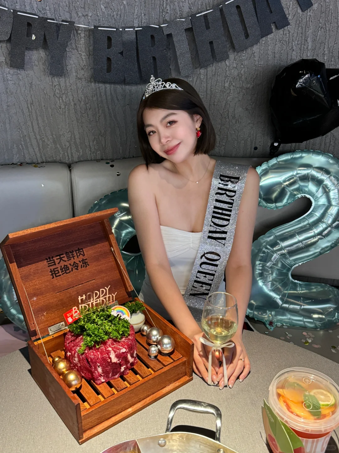 自己布置的生日现场也太喜欢啦~ 横幅、气球、小皇冠👑…好有氛围 还有坠特别的鲜牛肉蛋糕hhh 也太用心喽 爱我的姐妹们!!