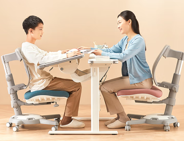 配套的人体工学椅同样可灵活调节高度和座椅深度,椅背能精准贴合孩子背部曲线,给腰部、背部足够支撑,让孩子久坐写作业也不会腰酸背痛,帮助养成正确坐姿。宽敞的桌面能轻松摊开课本、练习册和文具,不用拥挤堆叠,孩子学习更专注,新学期打造专属学习角,这款桌椅套装是长远又靠谱的选择。