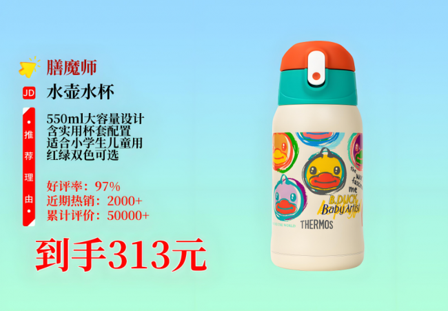 作为百年保温品牌,它的保温保冷实力在线,双层真空隔热技术,冬天装的热水到下午依旧温热不烫嘴,夏天装的冰饮大半天还能保持清爽,不管什么季节,孩子都能喝到温度适宜的水,呵护娇嫩肠胃。内胆采用316L医用级不锈钢,抗氧化、耐腐蚀,安全无异味,孩子喝水更有保障,家长完全放心。