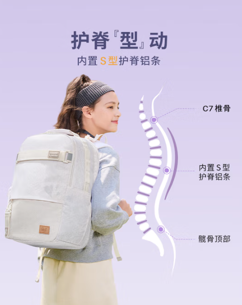 护脊设计堪称专业,S型人体工学加宽肩带能均匀分散肩部压力,不勒肩、不溜肩;3D透气护脊背板精准贴合孩子脊柱曲线,给背部足够支撑,帮助孩子保持挺拔坐姿,避免含胸驼背,守护发育期脊柱健康。胸扣和腰扣均可灵活调节,能适配不同身高的孩子,从一年级用到六年级,一步到位超省心。