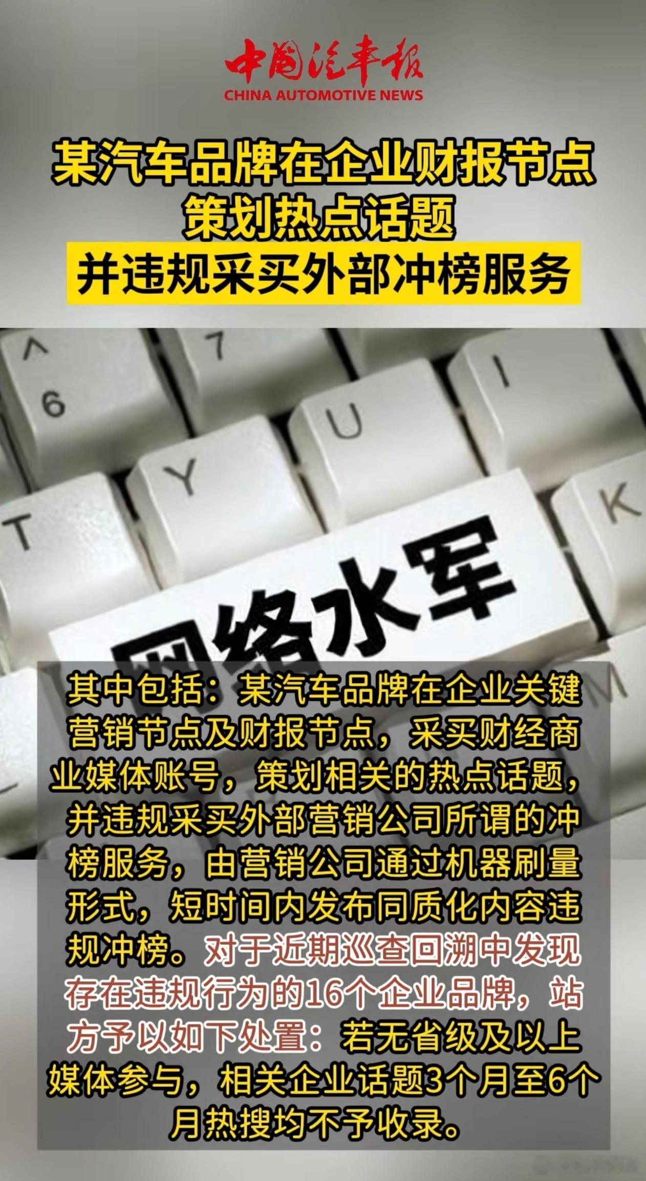 某汽车品牌买水军冲榜被罚自7月2号起3~6个月不能上微博热搜,至于“某”是谁,先