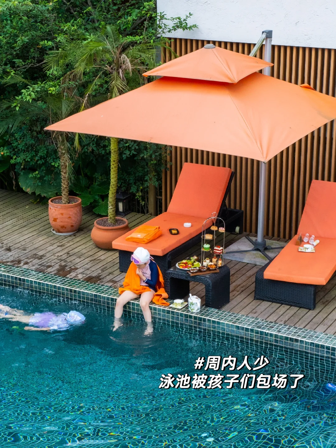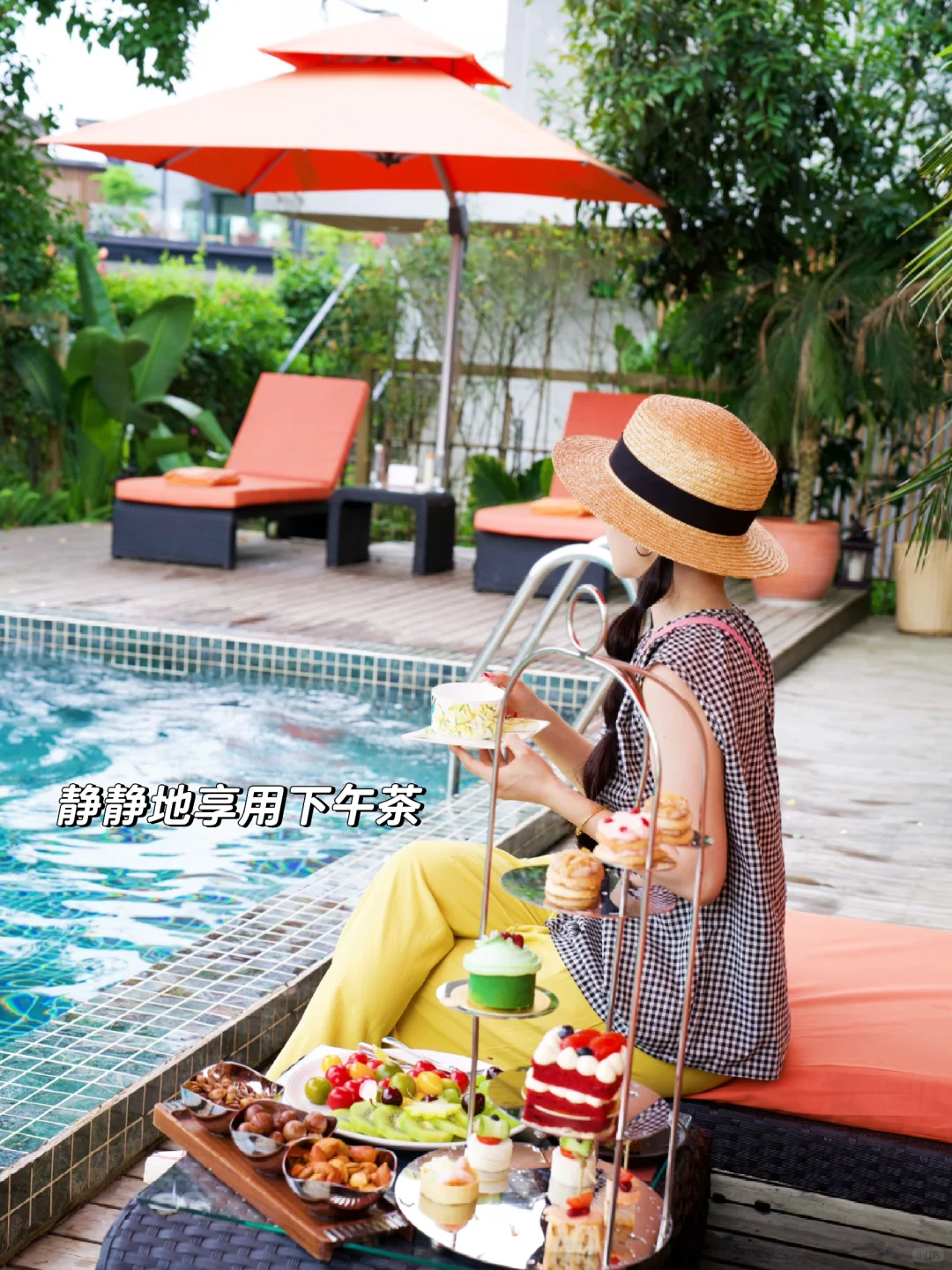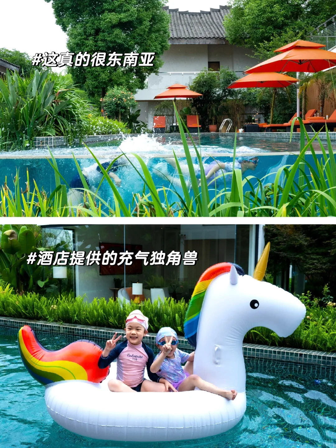 这是我近几年很爱住的一家民宿,档次很高、床品也很舒适,整个酒店风格很东南亚,细节做的很到位。连孩子的拖鞋及洗漱用品全都有。女儿很喜欢他们家的泳池,当她和同伴游泳时,大人可以来个泳池下午茶,度假感直接拉满。每年三四月这里开满了紫色的鸢尾花,真的很美[斜眼R]。卫生和服务也是亮点