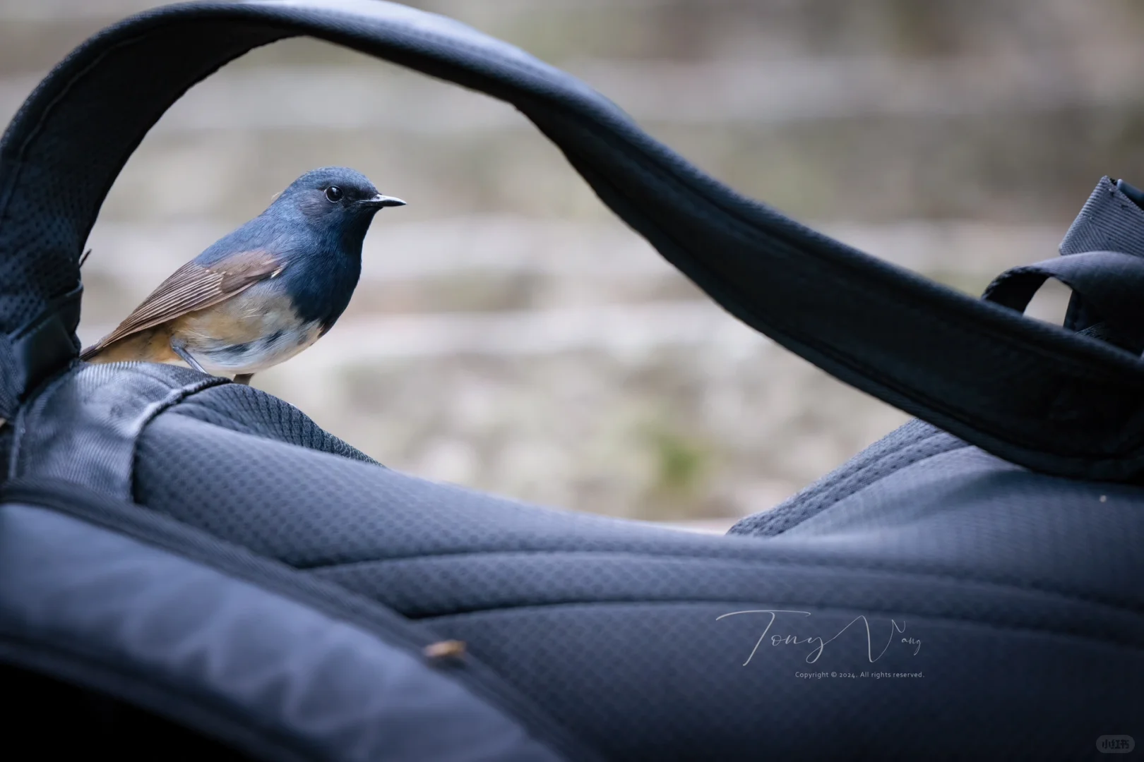 我和朋友在对着竹林寻找黑喉歌鸲,一回头发现它正在不远处路边翻虫子[笑哭R],沿着石阶蹦蹦跳跳,突然一下就蹦到了朋友放在路边的背包上[黑薯问号R]。完全没有干扰和引诱。大概是这个背包的包生高光了[色色R](btw这个包还落过蚁鴷),称之为观鸟圈最牛的背包/背包挂件,不过分吧[doge][doge][doge]