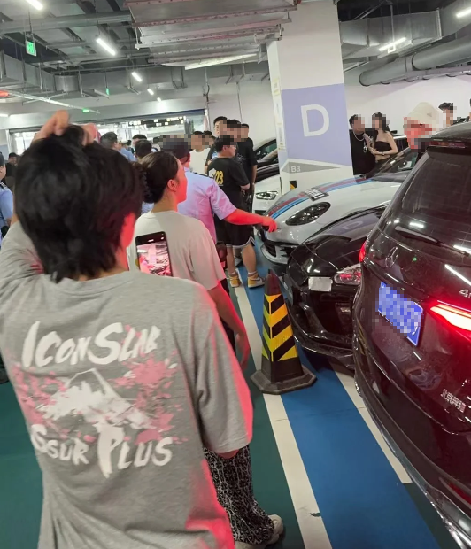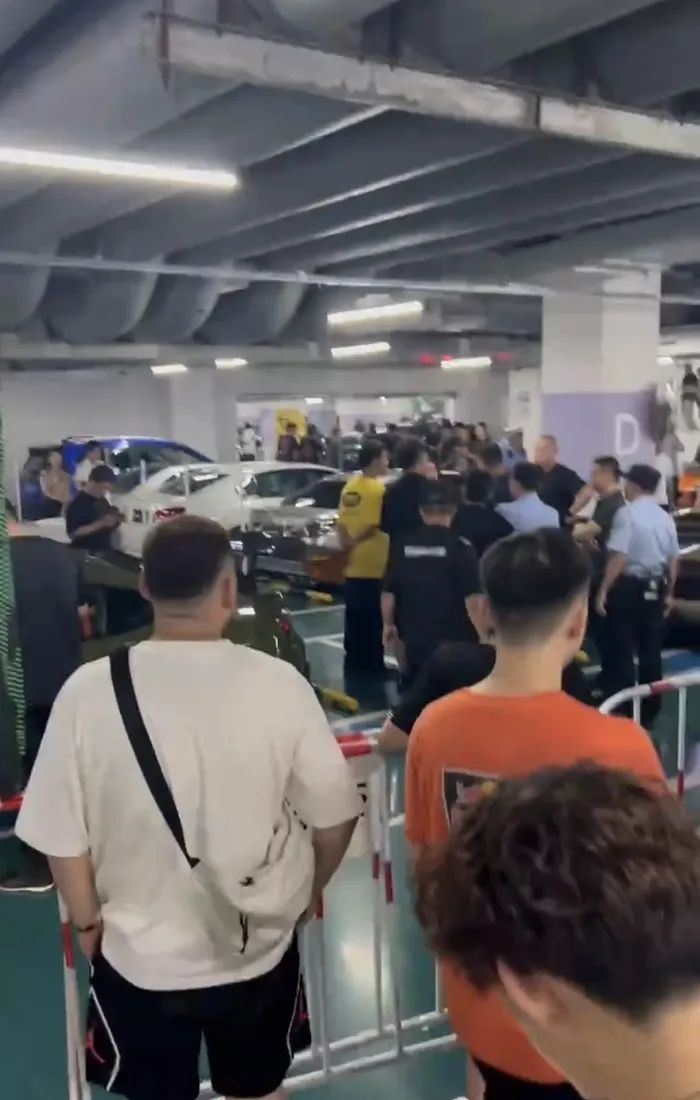 网传视频显示,一汽车地库内聚集了数十辆汽车,现场有数十名警察维持秩序,并要求相关人员配合调查,同时疏散无关人员。
