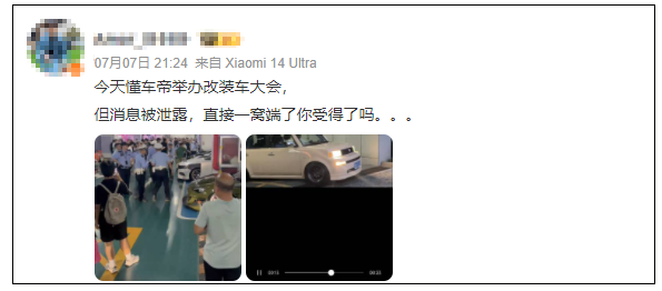 7月7日,有网友称,知名汽车资讯平台“懂车帝”在北京举办了一场改装车大会,遭遇执法部门查处被“一锅端”。