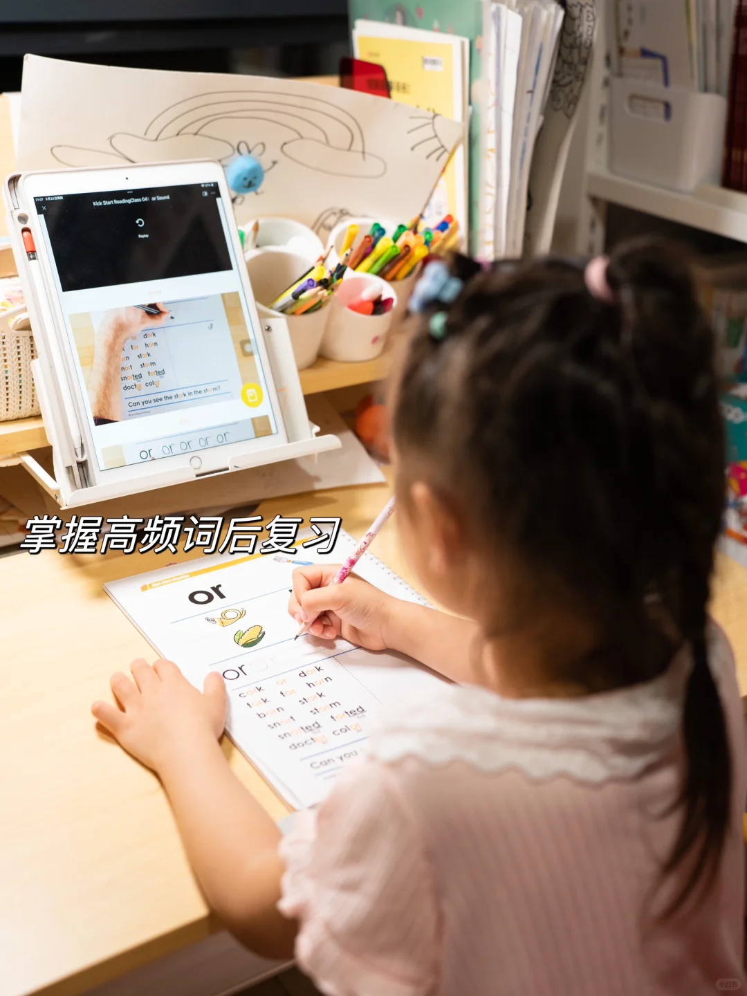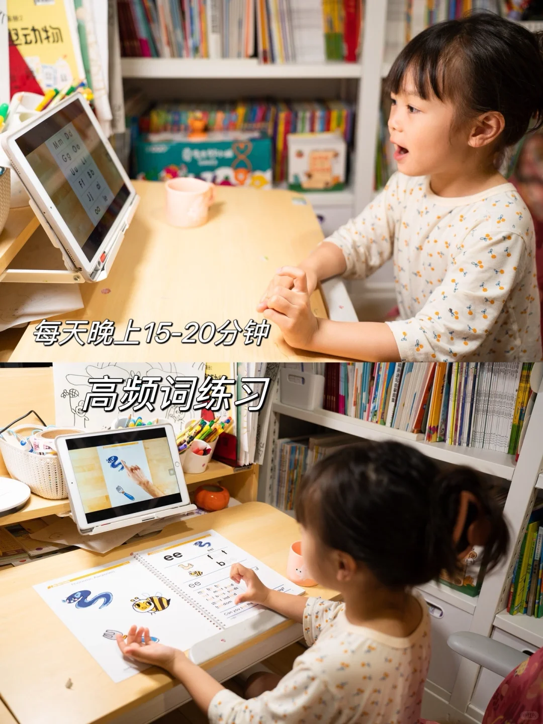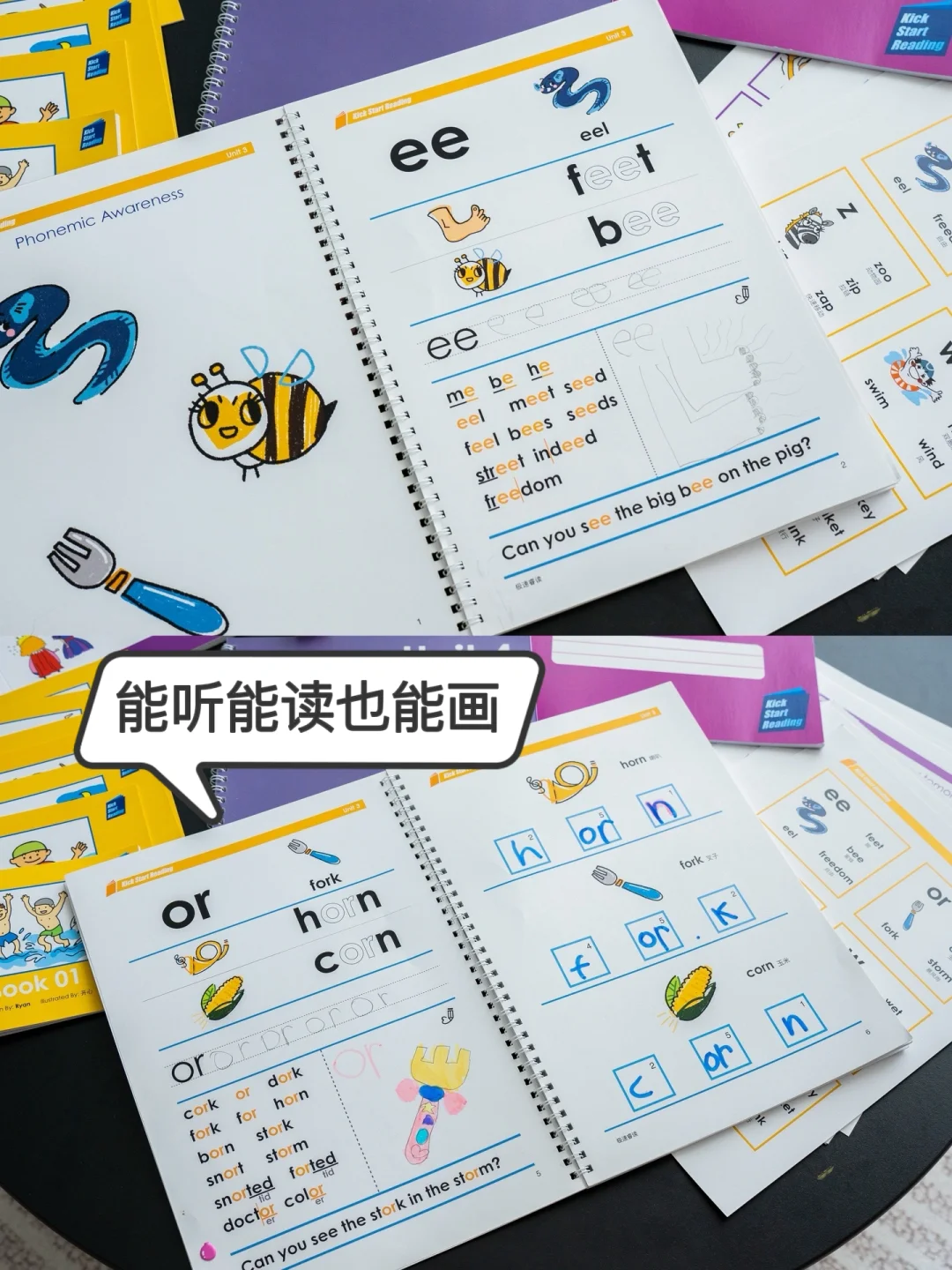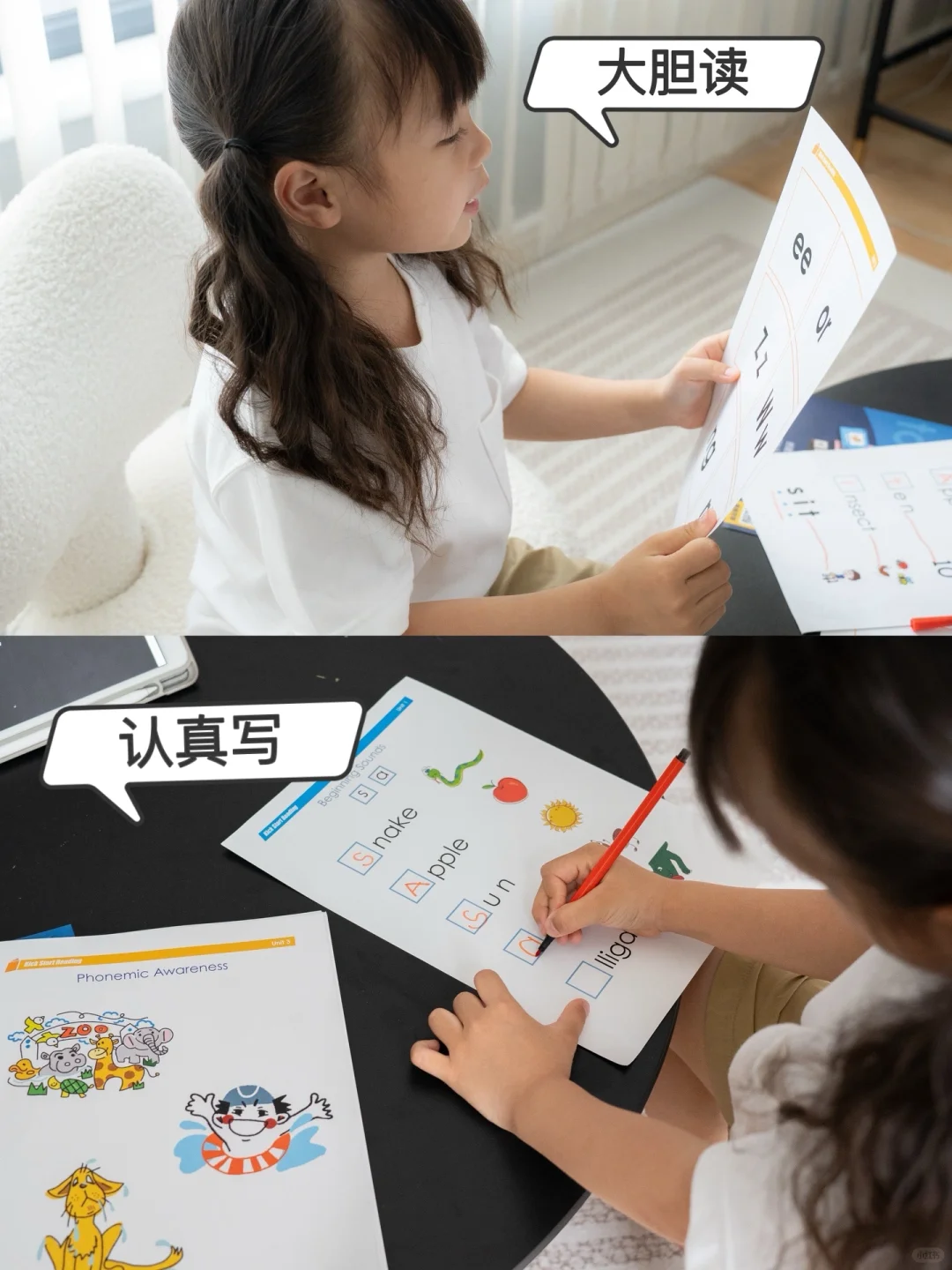 当达到一定词汇量之后我们便开始让孩子学习自然拼读,这就是我们目前在学习的阶段。