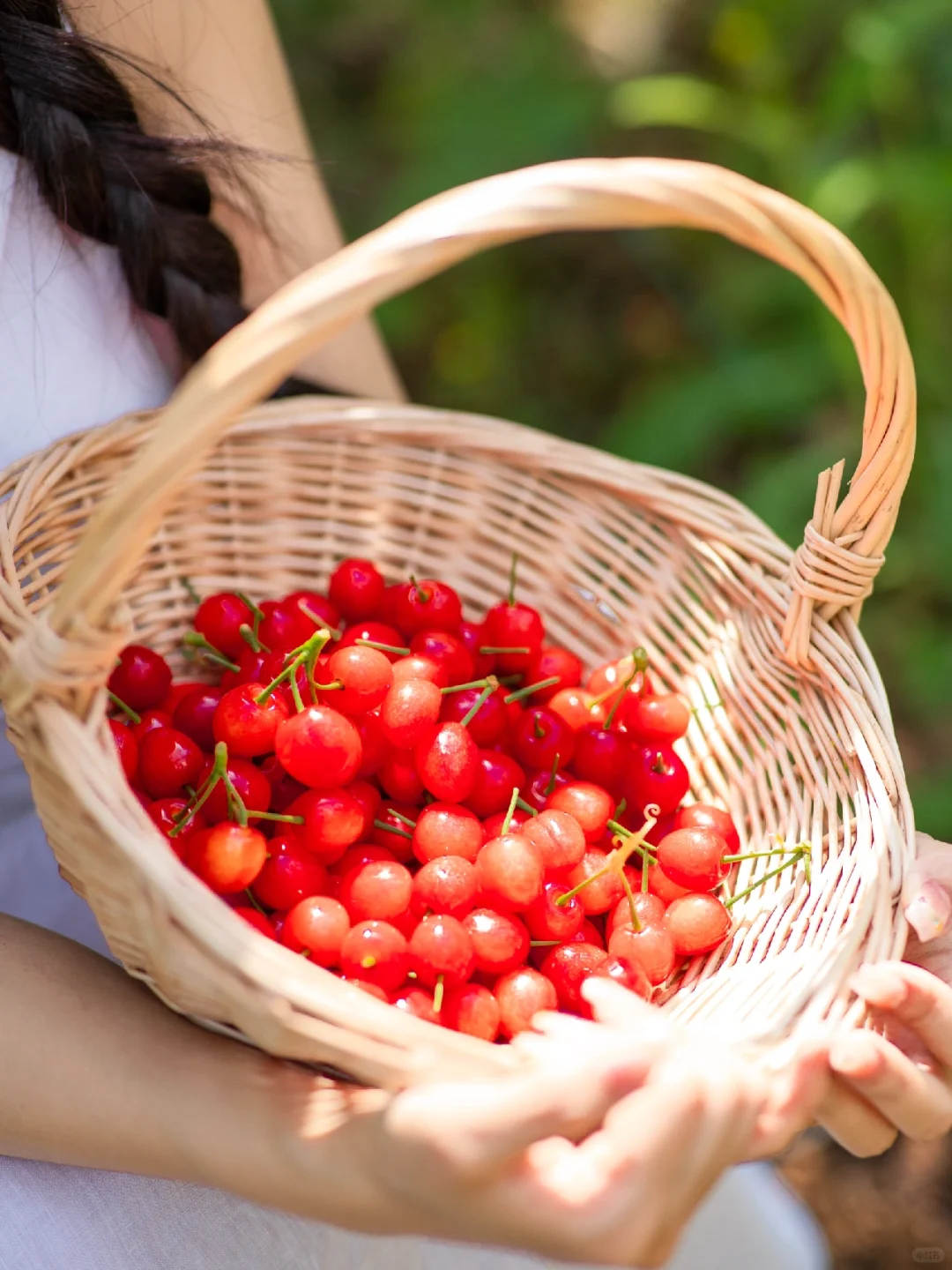 用小篮子装樱桃拍照更出片噢~[斜眼R]
