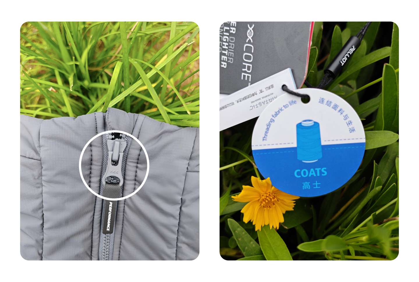 拉链均采用高品质YKK拉链,持久耐用,顺滑不卡壳。口袋也有拉链设计,不用担心置物丢失。整件衣服针脚细密,做工精致。缝线供应商为COATS高士,是国际一线大牌,产品坚韧耐用防撕裂,广泛应用在顶级户外产品中。