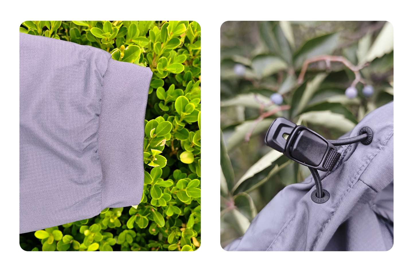 弹力收缩袖口,防钻风进水,面料柔软贴肤;下摆使用了NIFCO高品质扣具,单手即可收紧或放松,根据身形自由调节松紧。